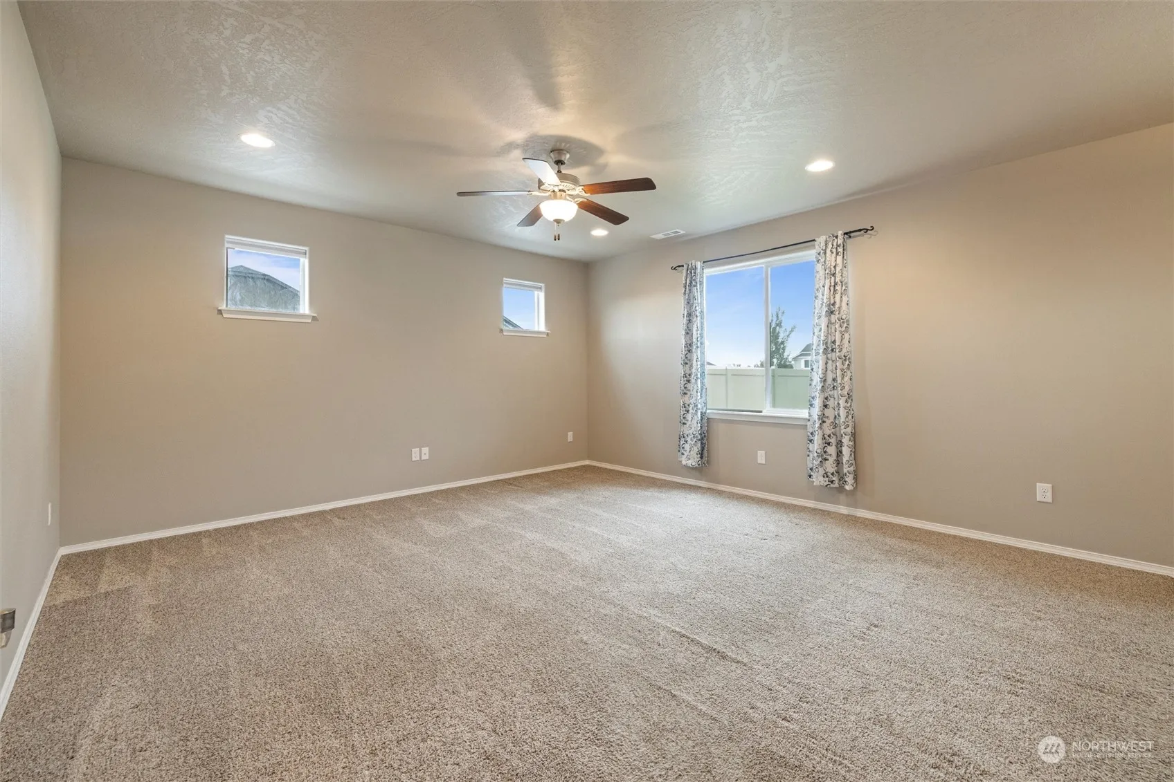 Check out this charming and efficient home with the Teton floorplan that has 2200 sq ft. and offers 4 bedrooms and 2.5 baths. Main floor has tile entryway, den with French doors and large storage closet, a ½ bathroom, spacious kitchen with granite countertops and stainless steel appliances, open dining area, and living room with lots of natural light. Upstairs is a large Primary suite with walk-in closet, beautiful bathroom with dual sinks, big soaking tub and step-in shower. A second full bathroom, laundry room and 3 more bedrooms upstairs as well. Sliding door off dining area opens to covered / lit patio in fenced backyard with UG sprinklers. Attached 2 car garage with man door and attached storage shelves. Welcome home!