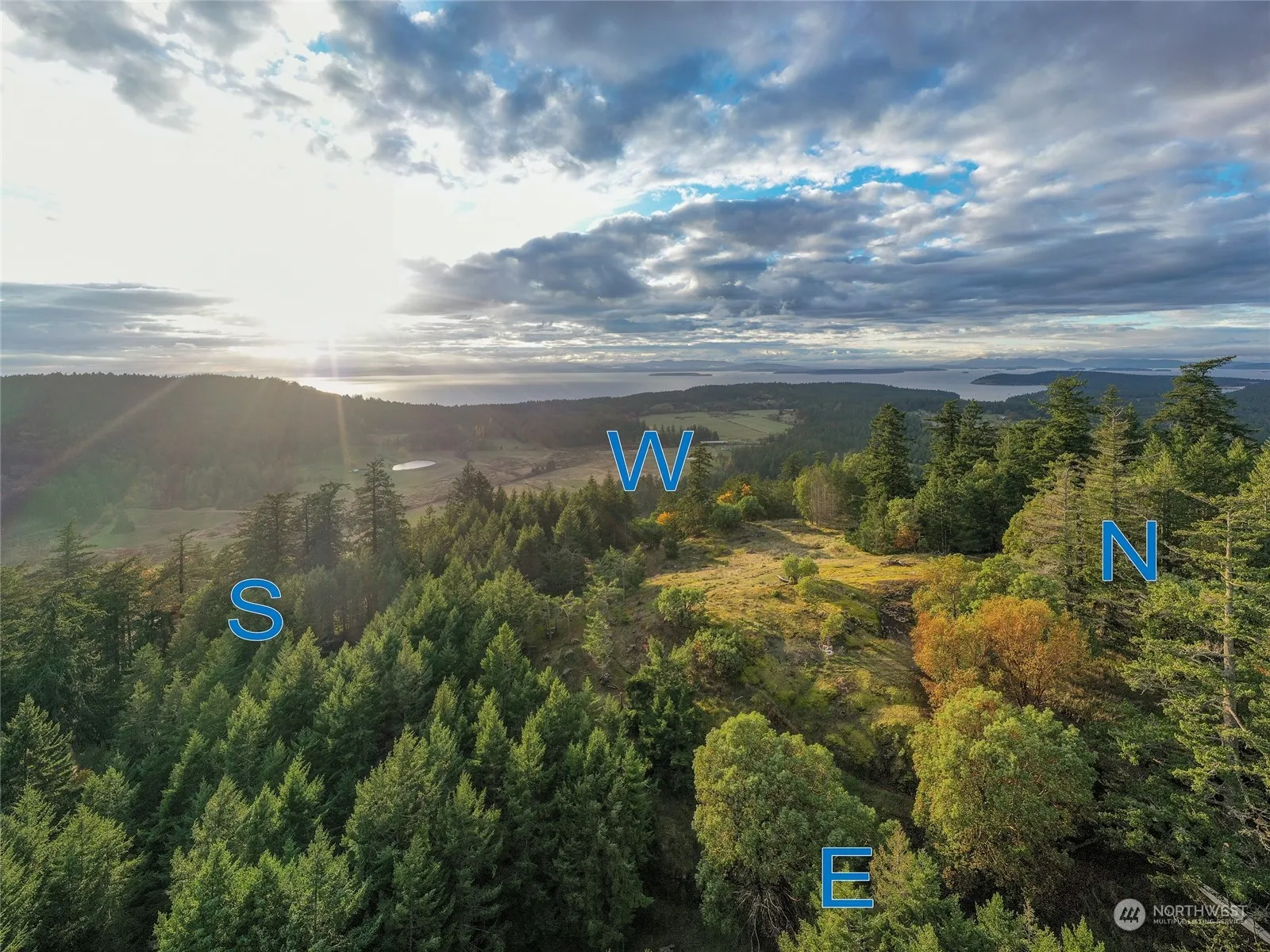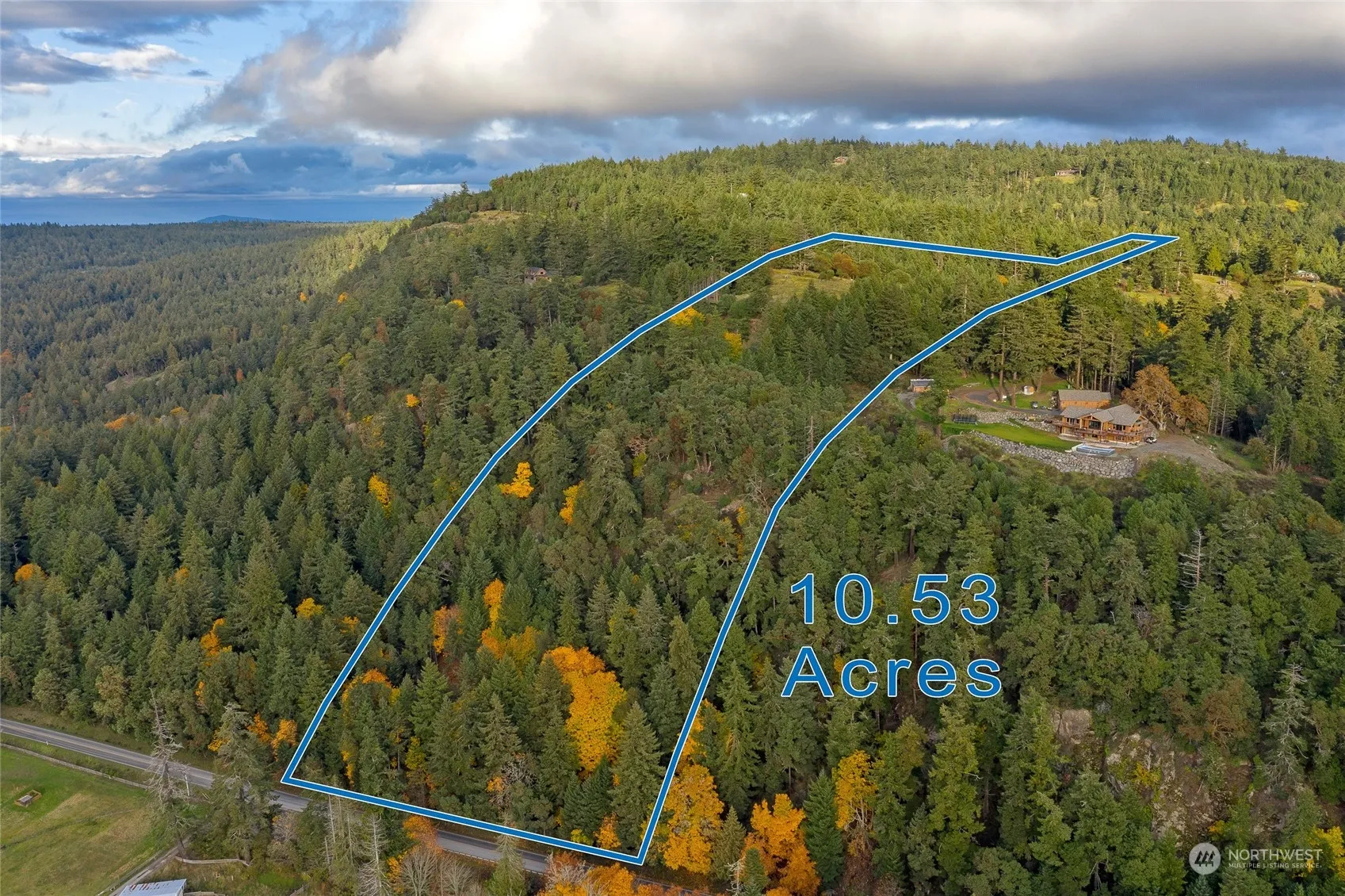 Captivating 180 degree south facing views from this picturesque private hillside perch. Views featuring, from left to right, Whidbey island, Lopez Island, Mt Rainier, Mt Grant, Mt Dallas, Sugarloaf, Olympic Mts & Vancouver island. Property feels like a National Park with 450ft of elevation. Enjoy 1.3 mile hike out and back w/cliffs & views to the West. Permitted house plans. All infrastructure in place including private well & 4 bdrm septic system as well as driveway, pwr, water & septic stubbed out at home site & shop site. Adorable Cabin & Bathhouse w/separate laundry room. Lower parking pad off of West Valley Rd. Stunning sunsets over Victoria on Vancouver Island, magnificent starry night skies & all day sun. A very special spot indeed!