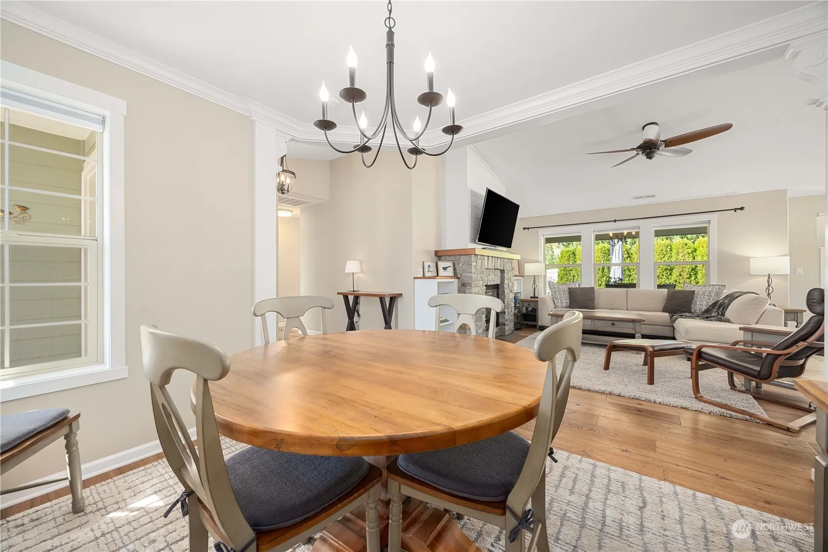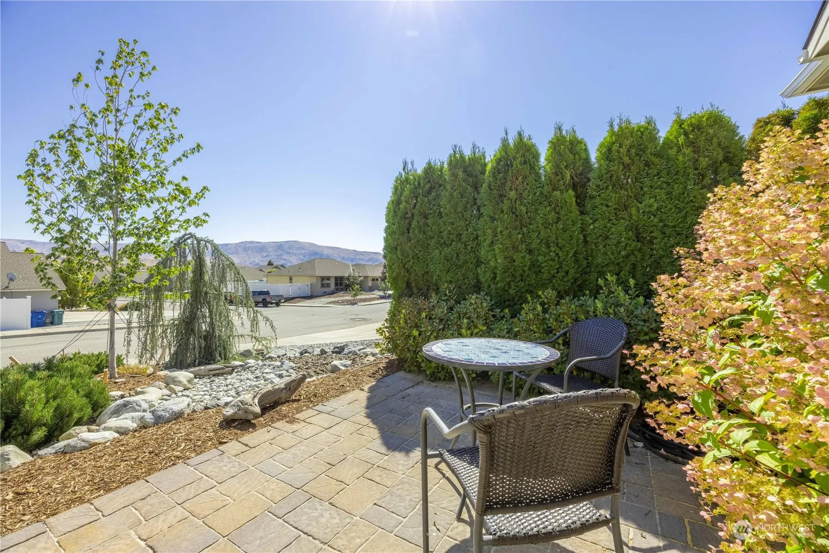 Welcome to the Ridgeway, a charming 1795 sq. ft. craftsman-style rambler on a end lot in SunCrest, Lake Chelan! This home boasts pride of ownership with recent upgrades, including stunning engineered hardwood floors, new carpet, fresh interior paint, modern appliances, and quartz counters. The open floor plan features a vaulted great room with a stone-surround gas fireplace, abundant natural light, and a dining area with shiplap siding. The flexible space off the garage could serve as an office, bonus room, or gym. Enjoy a private backyard oasis with a covered patio, beautiful landscaping, a water feature, garden area, and a fully fenced yard. Just 1 mile from downtown Chelan!
