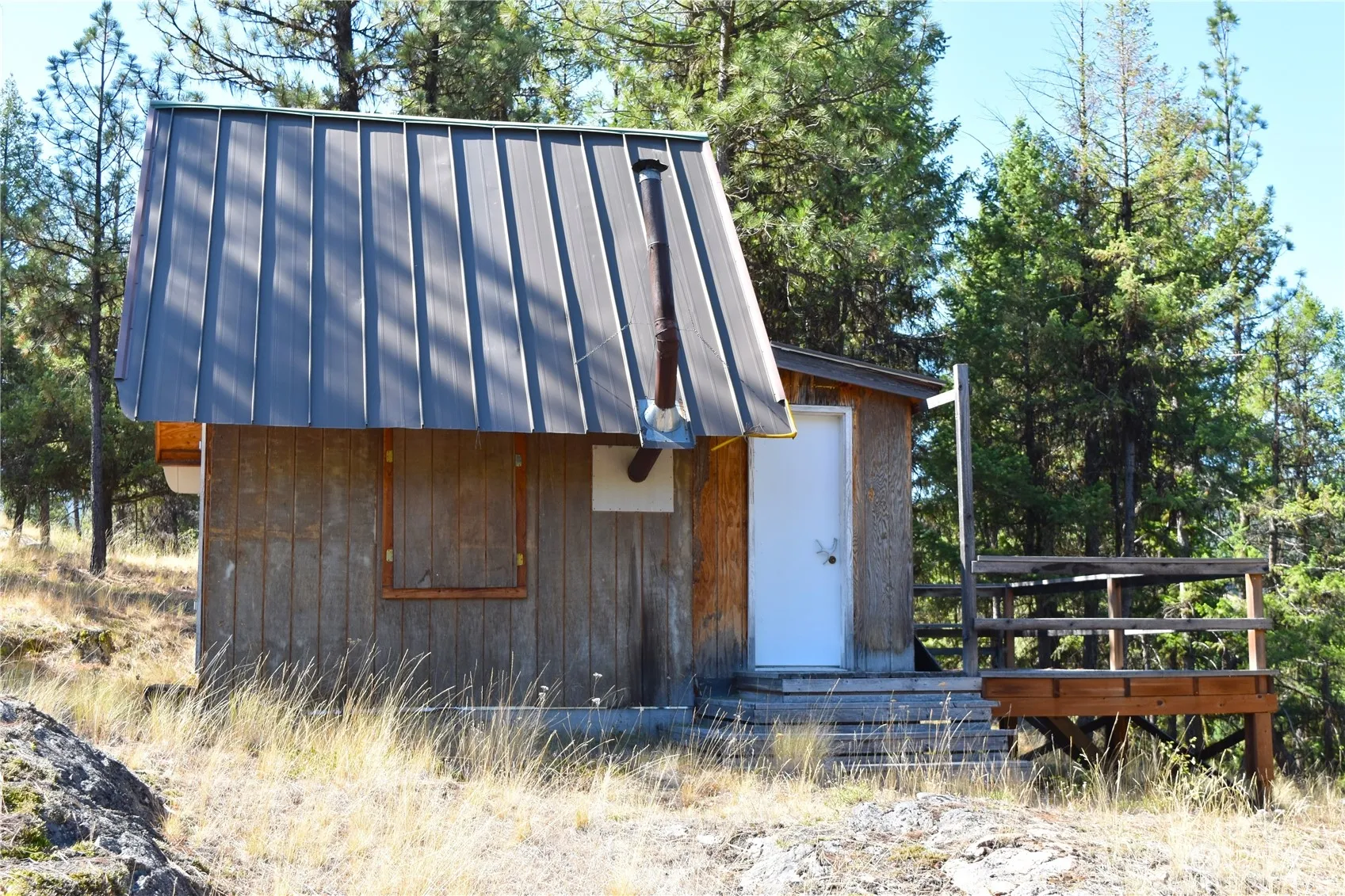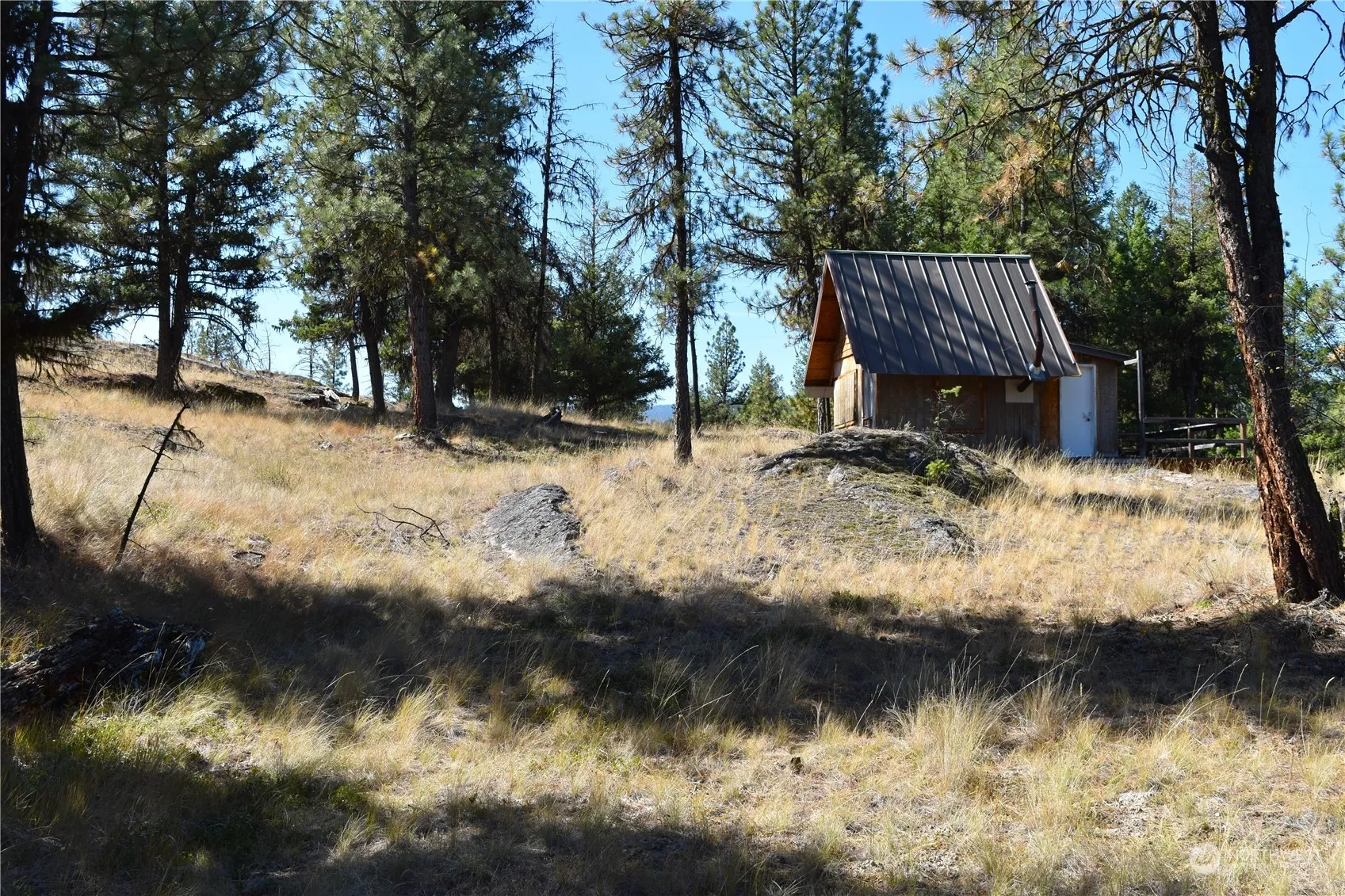 Amazingly diverse geography on this 40 acre parcel! Tall rocky bluffs overlook some of the nicest area the Aeneas Valley has to offer! A small cabin with a tiny-home feel is steps away from amazing valley views. It is wired for solar and has a wood stove and an attached deck. The entire eastern border of this property adjoins 79 acres of state land! A trail from the cabin leads down to six acres of flat valley floor which is sub-irrigated and green all summer. The property also features a seasonal pond and 350 feet of the west fork of the Sanpoil river that runs through the north end. Whether you want to hunt, recreate, or build your dream home (there are several possible building sites), this property is a rare find and very private!