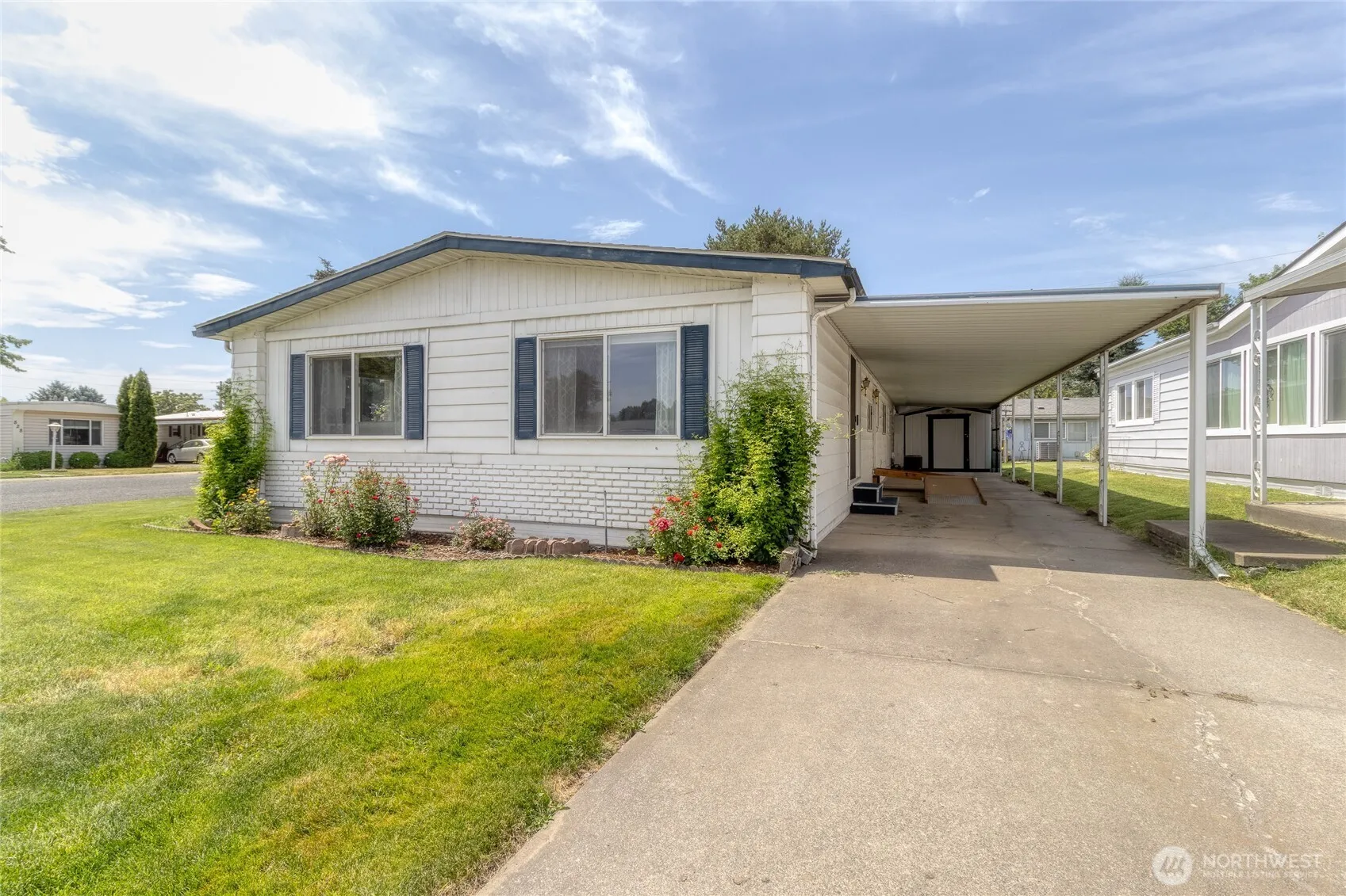 This expansive, double-wide manufactured home offers over 1,700 sq. ft. of comfortable living space in the highly sought-after Country Estates community. Featuring 3 generously sized bedrooms and 2 full bathrooms, including a primary suite with a double vanity and walk-in shower, this home is designed with convenience and comfort in mind. The large living room is perfect for entertaining or relaxing, while the bright, spacious kitchen provides plenty of cabinet space and opens into a separate cozy living area—ideal for a reading nook or TV lounge. Outside, enjoy a good-sized carport/patio, perfect for outdoor gatherings, and a shed for extra storage. This home is ideal for those seeking a peaceful lifestyle in a friendly 55+ neighborhood.