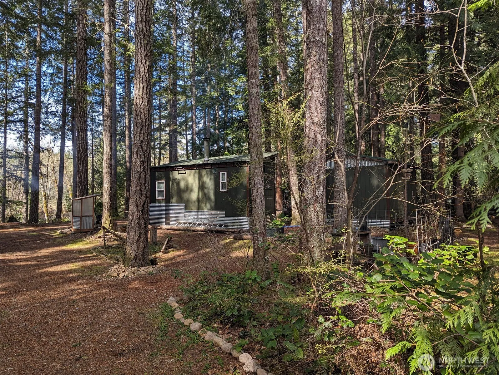 Two very private lots overlooking a creek and green space. This lot is ready for building. These lots are well done with outbuildings and carports and a nice sized deck for relaxing. The lot has nice sized trees. There is a utility trailer with facilities on the property. Sit, relax and listen to the sound of the babbling creek. This lot shows pride of ownership. Come and take a look. Come and enjoy all of Lake Cushman amenities: parks, lakes, boat ramps, fishing, swimming, golfing and hiking. The lot has partial mountain views. There is a fire hydrant in front of property.