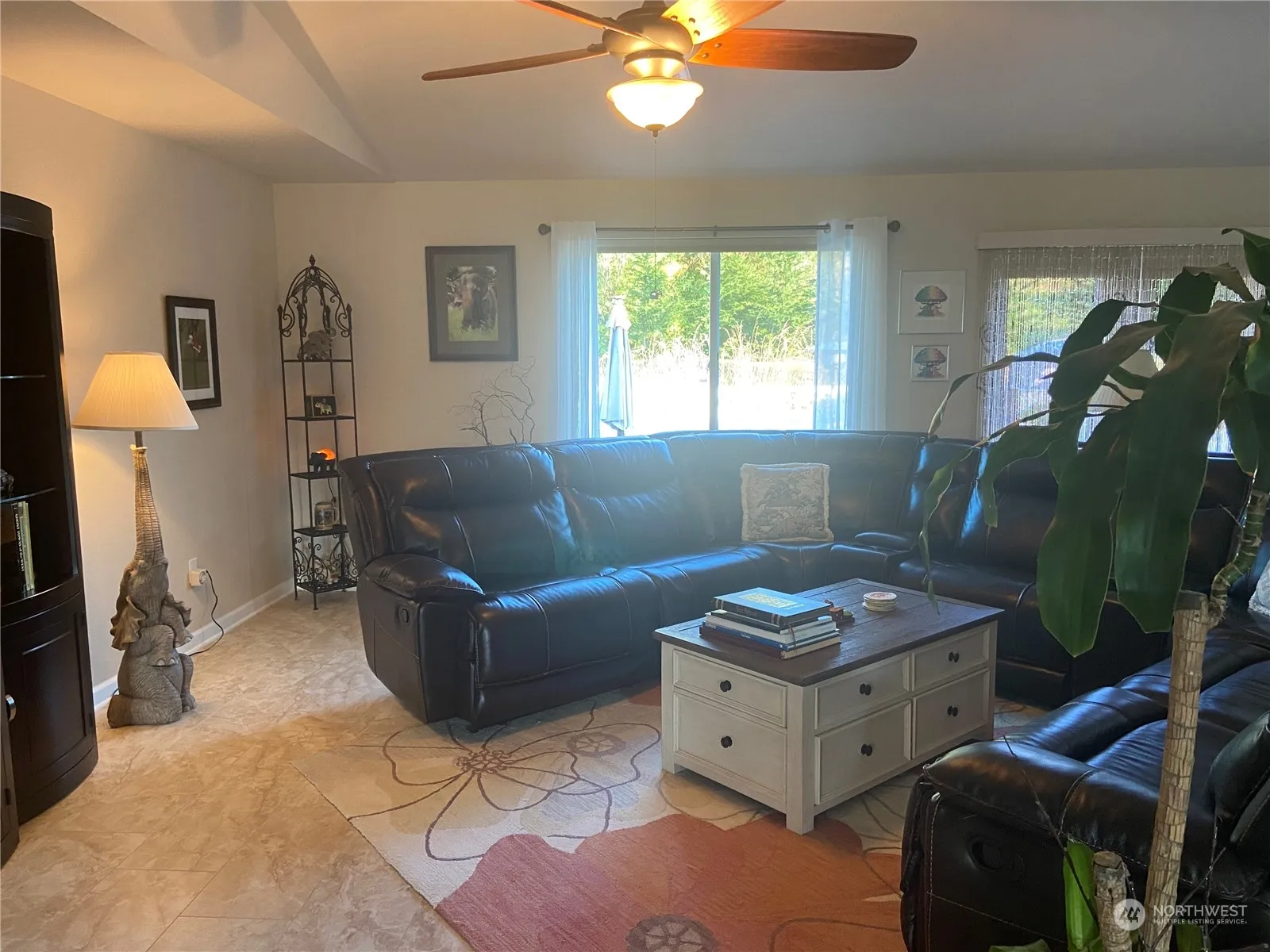 Custom 3-bedroom, 2-bath home with office. One story with spacious open floor plan, vaulted ceilings and ceiling fans throughout. Window shades throughout, some are remote controlled. Upgraded stainless steel package, including double oven, trash compactor and a french armoire refrigerator. Quartz counter tops, walk-in pantry and a pot filler. Laundry room includes upgraded washer and dryer, a utility sink, storage and quartz counter top for folding. Sewing room/guest bedroom has queen size Murphy bed. Two full bathrooms with quartz counters, double sinks and bidet in master. 4-car garage, solar attic fan and heavy duty space age insulation. 1,000 + square foot exposed aggregate enclosed patio with fire ring and canopy. 400 square foot shop
