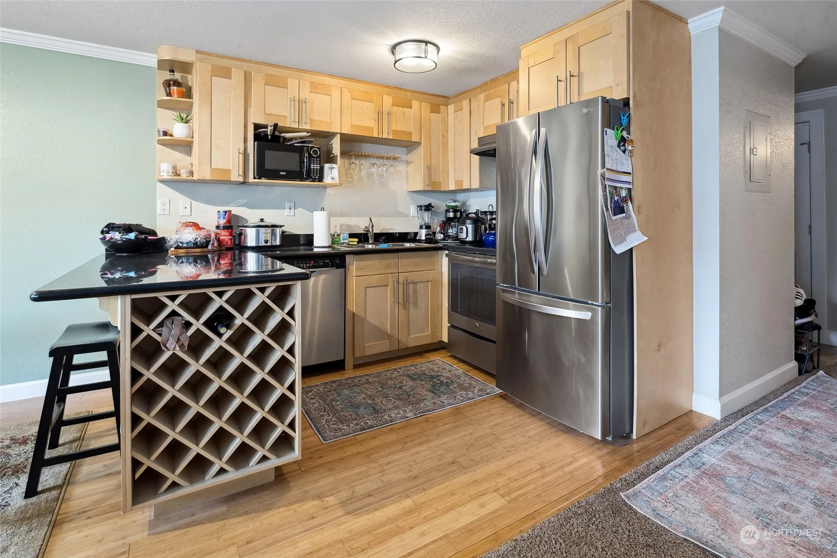 Close by Multnomah Village & Gabriel Park. SELLER WILL PAY 1ST TWO MOS HOA FEES. Charming 1-bed, 1-bath w. cozy living space, perfect low-maintenance home. Spacious living rm, wood fireplace, dining area leads to covered patio space w. Lg storage closet. Kitchen w. high-end SS appls, granite counters & maple cabinets. Breakfast bar for add’l seating & perfect spot for casual dining. Lg bedroom w. space for king-size bed & add’l furniture. Walk-in closet leads to bathrm w. add’l access to hallway. Full-size bathtub & shower. Full size W/D with add’l storage space. Covered parking. Window & portable A/C units included. New windows, siding & ventilation. Seller carried financing; 5.8% with 30% down, 20 yr.