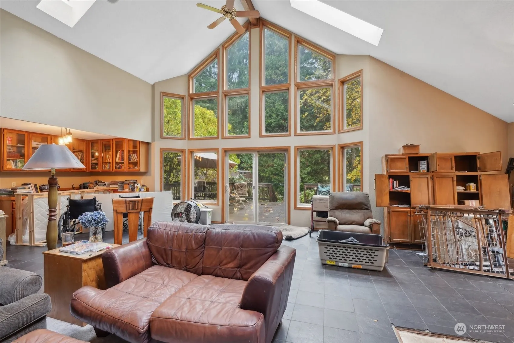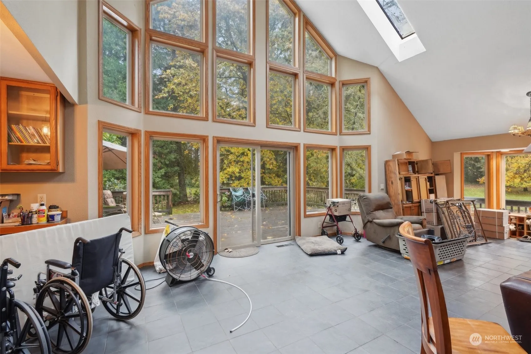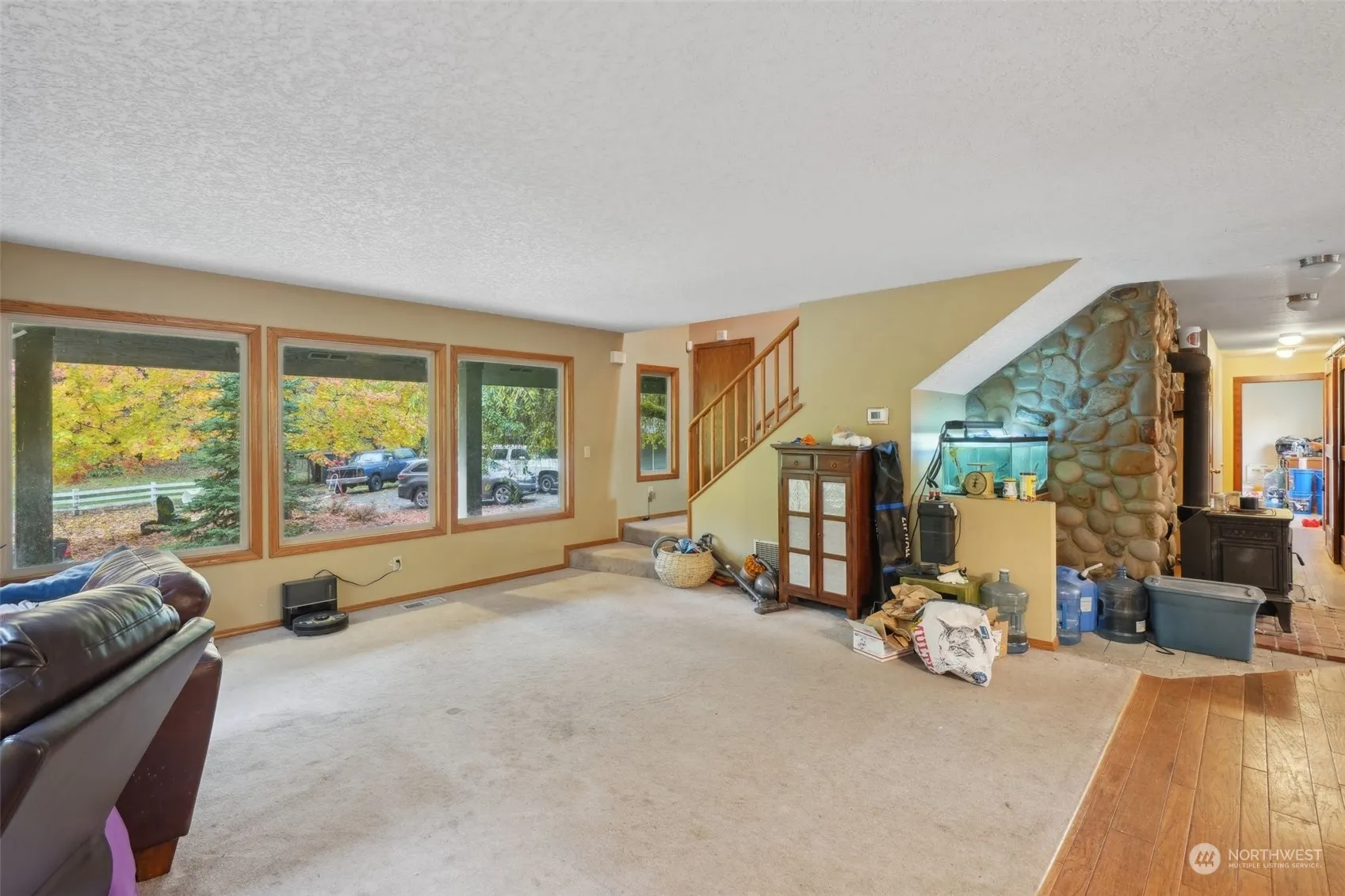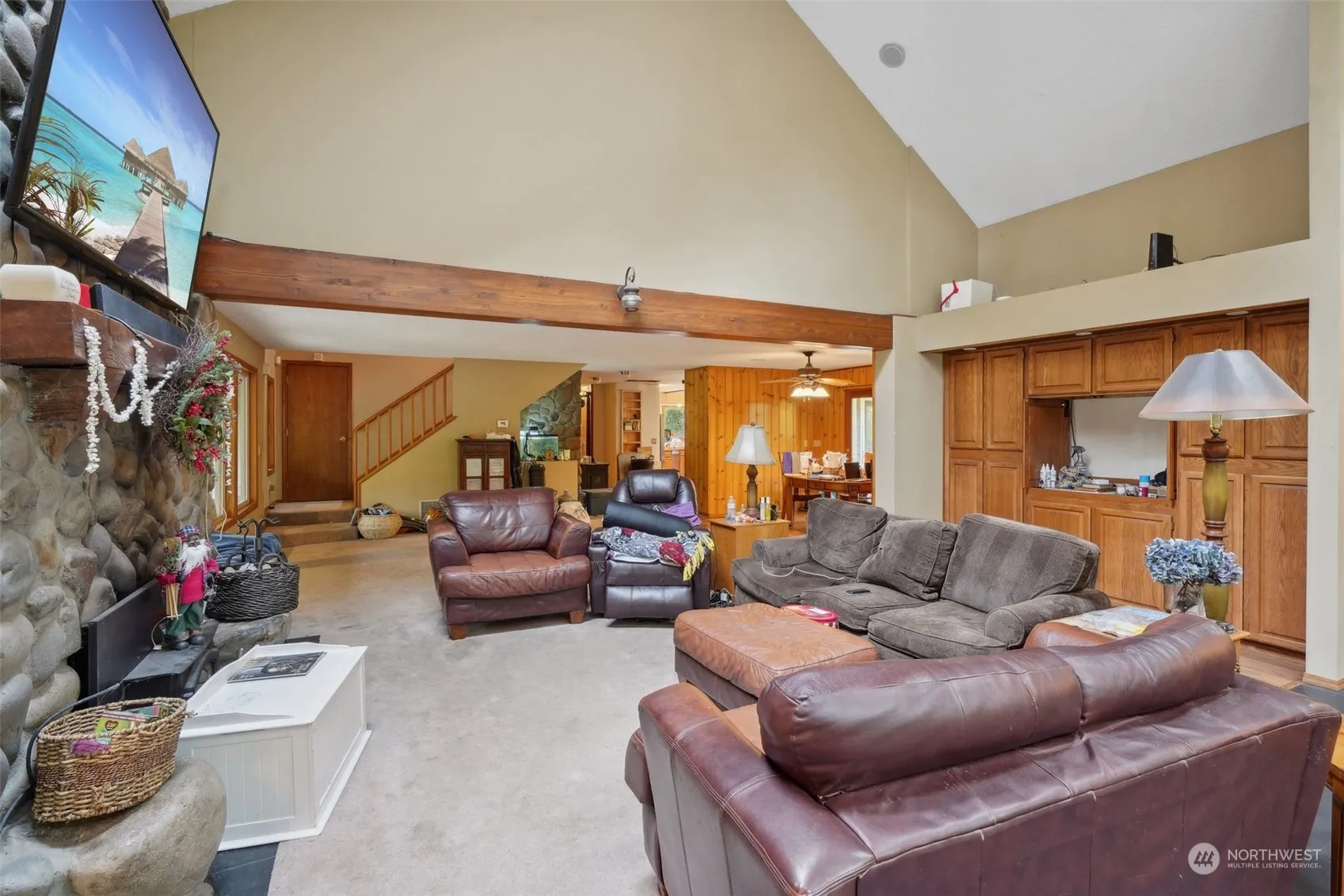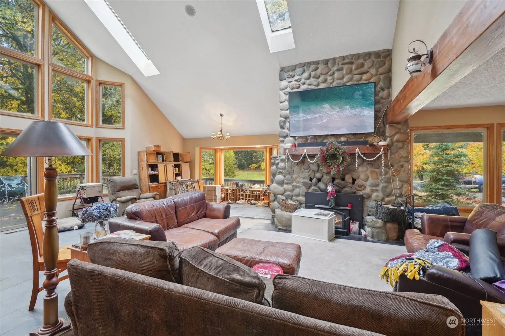 Unique property on 9.53 Acres! Living room, wood-burning stone fireplace, bay window, vaulted ceiling, skylights, wet bar, deck access. Knotty pine paneled dining room, French doors. Island/eat bar kitchen, lots of cabinetry, stainless appliances, wood-burning stove, vaulted ceiling, skylights. Primary en-suite with fireplace, vaulted ceiling, deck access, soak tub, dual vanities and toilets, tiled shower. 4 addtl bedrooms, uniquely designed with lofts, desk areas, skylights. Den with cozy loft. Office with exterior access. Laundry/mud room, powder room and 2 addtl baths. In-ground pool, koi pond, stone patio, cement pad, bridge crossing creek to back acreage. Detached 3-car garage, 6th bedroom, breezeway. RV parking. 81×26 barn with loft.