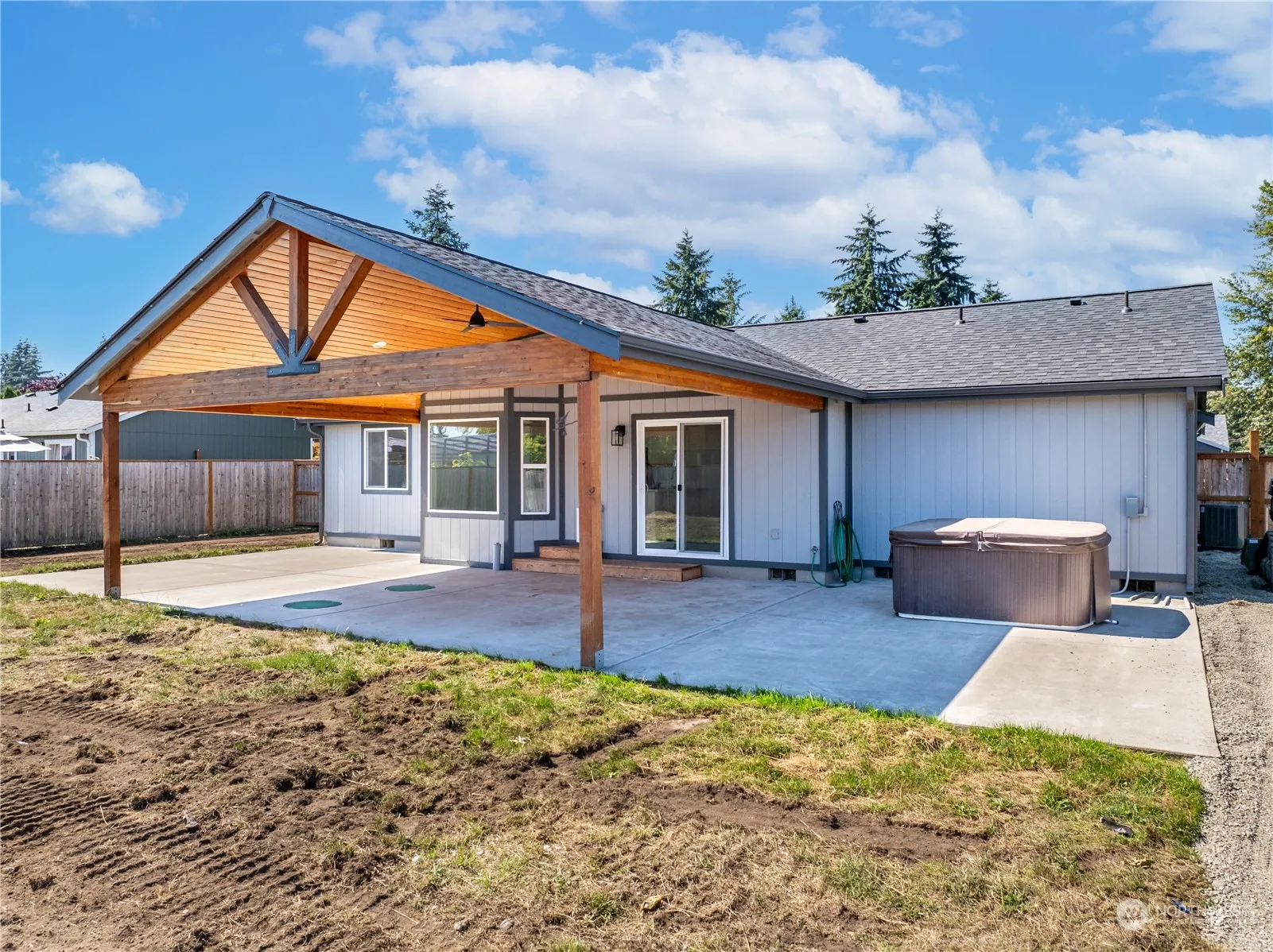 Better Than New! Don’t miss this stunning remodeled rambler featuring 3 beds, 2 baths & a large .29 acre lot! The brand-new kitchen boasts modern white cabinets, new countertops, stainless steel appliances, and a charming dining area. No work is needed here! Newer roof and gutters, new windows, new trim, new interior doors, new interior lights & ceiling fans, new LVP flooring throughout, & fresh paint! The full-size master bath features a double vanity & is thoughtfully separated from the other rooms for added privacy. The fully fenced backyard, installed 2 years ago, includes a beautifully covered patio with a hot tub. This home is truly move-in ready & offers modern updates in a welcoming and well-designed space. Just 6 minutes from I-5!