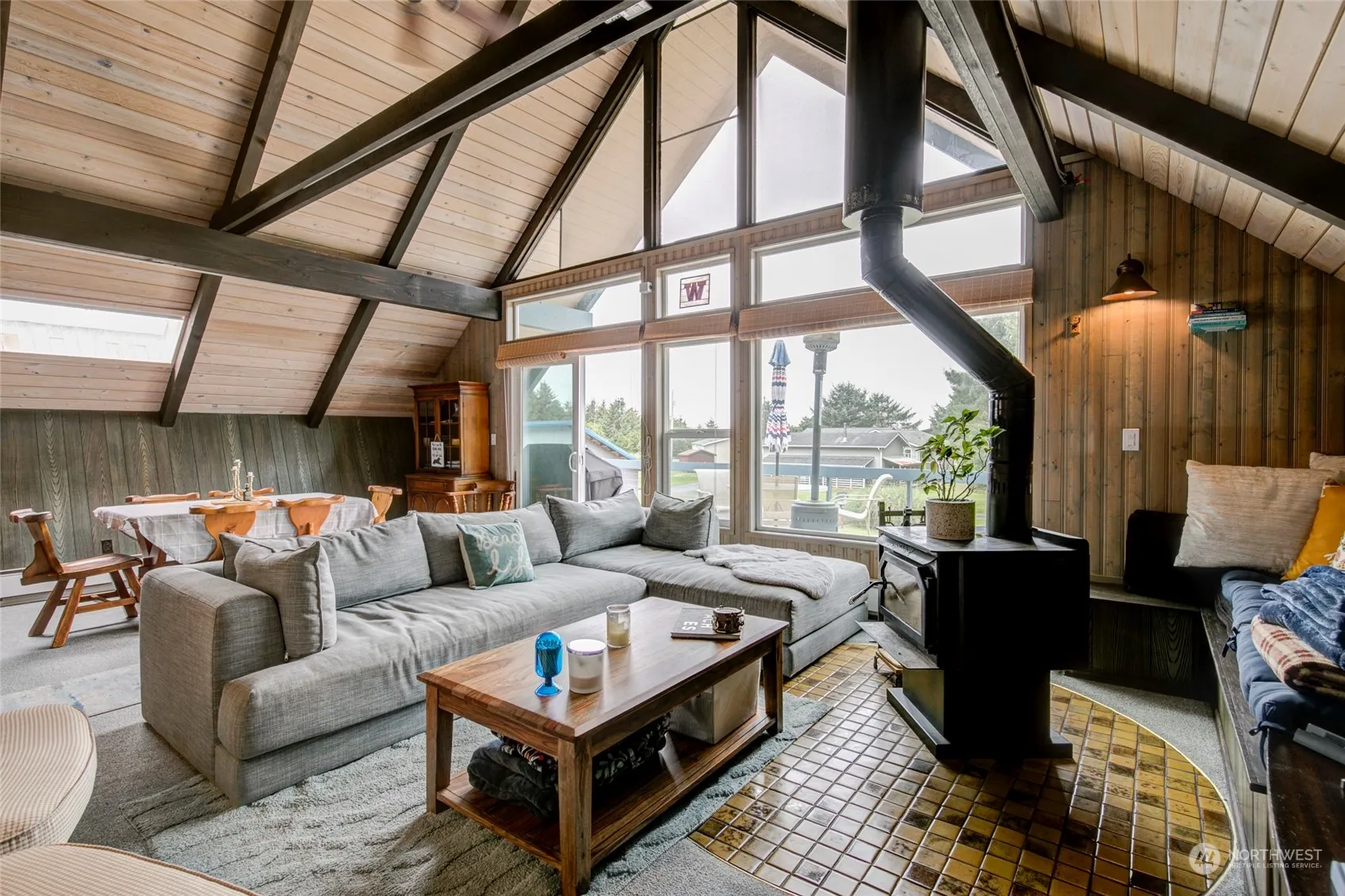 Searching for lots of space, this 2,392 sq. ft. home is the place. Zoned to allow for nightly rental w/ County permit. The 24×36 garage/shop is currently being used as entertainment area for family & friends & additional shed on sight for even more storage. 1st floor: Primary bdrm, 3/4 bath, walk-in-storage area/office & laundry rm. 2nd floor: Vaulted ceiling, wood burning stove, living rm, kitchen, 2 bdrms, 3/4 bath & large deck for entertaining. 3rd floor: 1/2 bath and huge room currently being used as office & has 3 beds for additional guests. Sea View Estates provides a private trail leading to miles of beach combing and enjoyment. This home sits on 2 lots.