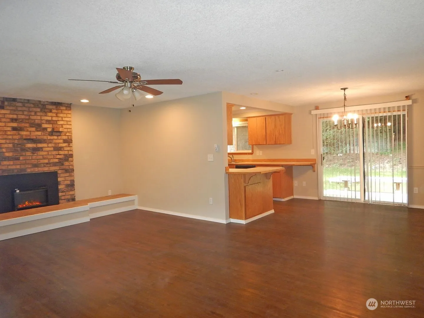 Refreshed rambler in a quiet riverside community. Here is a great 2 bedroom home, with oversized single garage on a shy 1/2 acre! You’ll love the newer solid surface wood flooring and economic electric fireplace as well as the updated lighting. Freshly painted interior. Recent roof should provide years of carefree living. The shed could use some tlc but is dry and a great space to store your tools. Enjoy the deck and fire pit in your back yard, or the front deck makes a nice spot to relax too! This home sits well back off the road with a territorial view of the neighborhood and mountains nearby. Dead end road and if you listen you may be able to hear the waterfall in the distance. Fishing and recreation nearby.