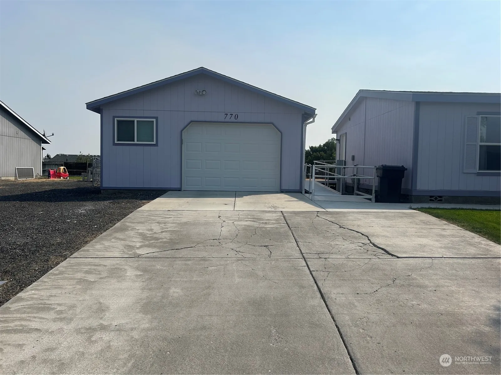 A large backyard is a gardener’s paradise with easily accessible paths and walkways. Partially paved, stamped concrete paths lead from accessible ramp to deck, patio, firepit, and beyond. The backyard has multiple types of fruit trees and is a Certified Wildlife Habitat. There is a separate one car garage with room for storage. An accessible ramp leads to the back door that leads to an open concept dining room with custom built in window seat with storage. The kitchen has matching appliances, purchased in the last few years. Primary bedroom with large en-suite with stand-up shower. Main bathroom upgraded to be accessible and spacious with seamless tile flooring. Front yard has in-ground sprinkler system and well-manicured lawn.