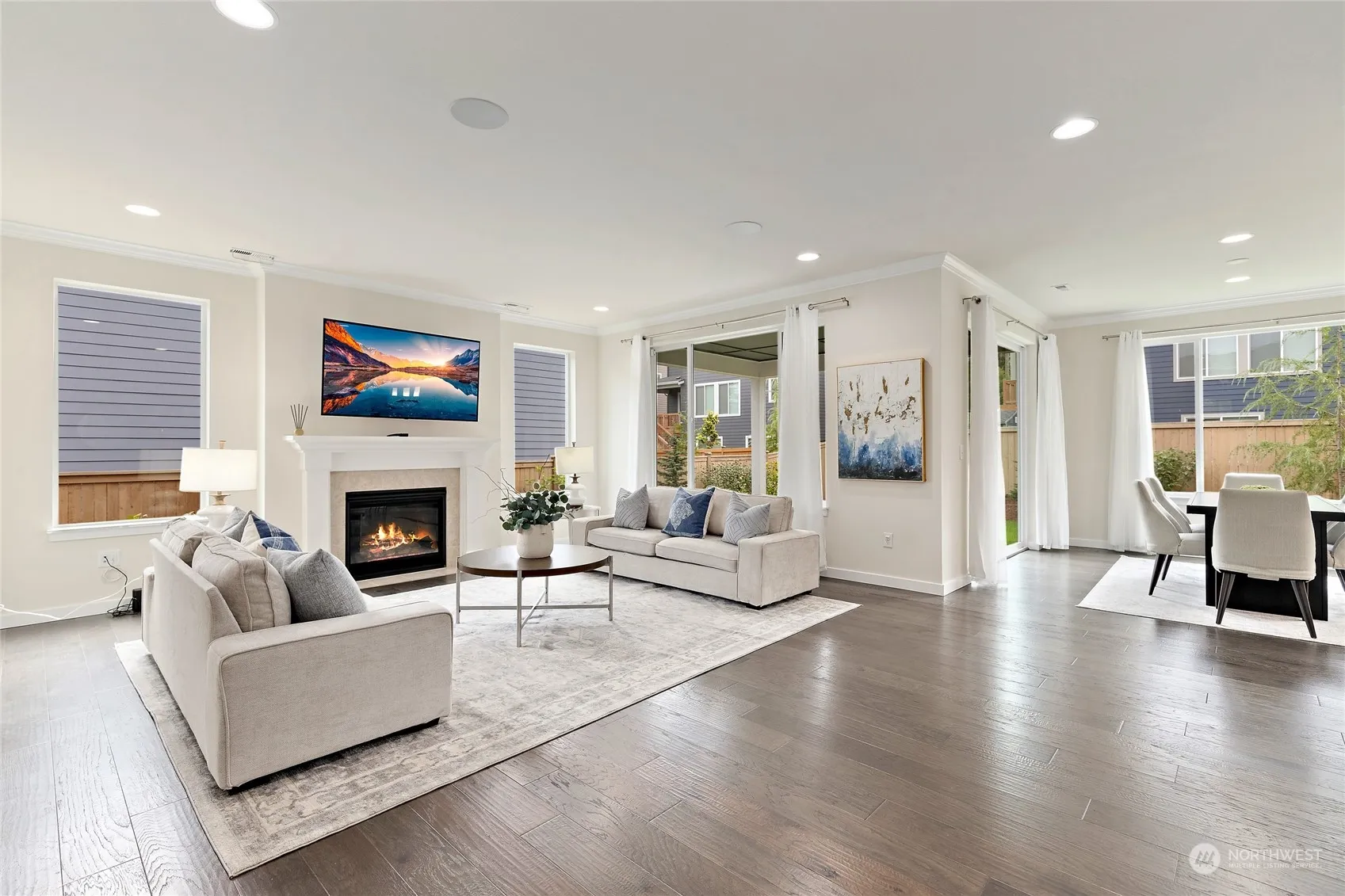 Introducing the Stanwood floor plan by Pulte, nestled in the desirable North Hill neighborhood. This thoughtfully designed home offers an open-concept living area with a main-floor den and powder room, perfect for a home office or quiet retreat. Upstairs, enjoy 4 spacious bedrooms, a large game room, and the laundry room. The $25,000 garage improvement elevates the space with epoxy flooring, a slat wall system, and high-end cabinets—ideal for a workshop, home gym, or streamlined storage. Sellers installed a heat pump which ensures year-round comfort and a Leafguard system meaning no more clearing gutters in the Fall. Located in the heart of Duvall, this home offers easy access to shopping, dining, and major commuting routes. Pre inspected