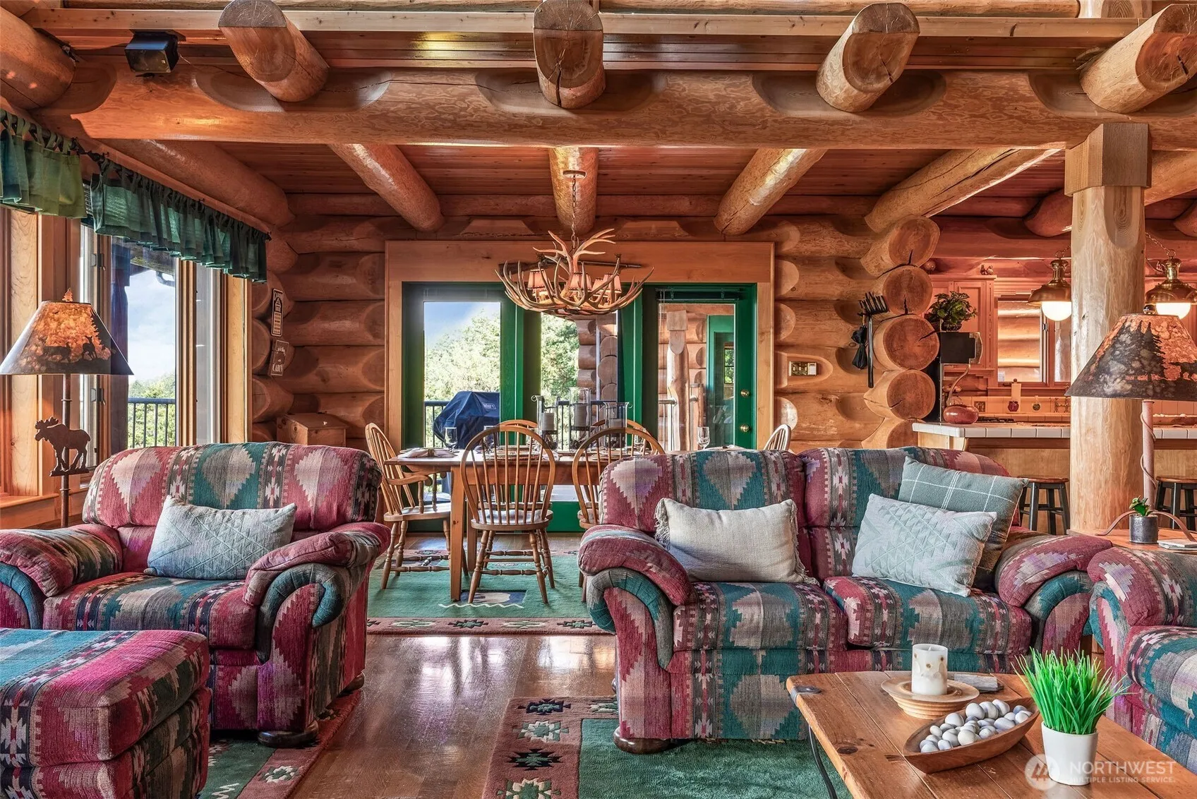 Bask in unobstructed waterfront views from every room! This extraordinary property offers the ultimate trifecta: views, character, & privacy. Perched above Discovery Bay with commanding views of Beckett & Diamond Points & the Olympic Mountains, this custom-built log home captures the essence of the Pacific Northwest. Nestled in a quiet cul-de-sac, it features 3 river rock fireplaces, a durable concrete tile roof, hydronic heating, white oak floors throughout the great room, and an expansive 2,500 sf clear cedar deck. A breezeway leads to a detached two-car garage & 672 sf apartment above- also with views. As part of the Ocean Grove community, enjoy access to a private beach & trail system. Rustic elegance meets superior craftsmanship!