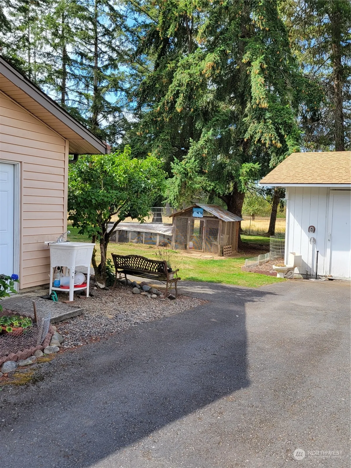 With a Country setting brings this perfect little mini farm you been looking for. Nice size rambler with 2 large bonus rooms. Covered deck off kitchen & dining also deck off bonus room. Detached garage has nice shop area in it for hobbies. Misc. outbuildings include chicken coop, rustic well house, large wood shed holding about 10 cord of wood, lawn and garden shed holding lawn mower and misc. garden equipment, huge garden area and a great building next to garden that could be used for cold storage, canning supplies etc. or maybe converted to a smaller barn. Property is partially fenced. So many amendites and possibilities in this home. Close to I-5 commute.