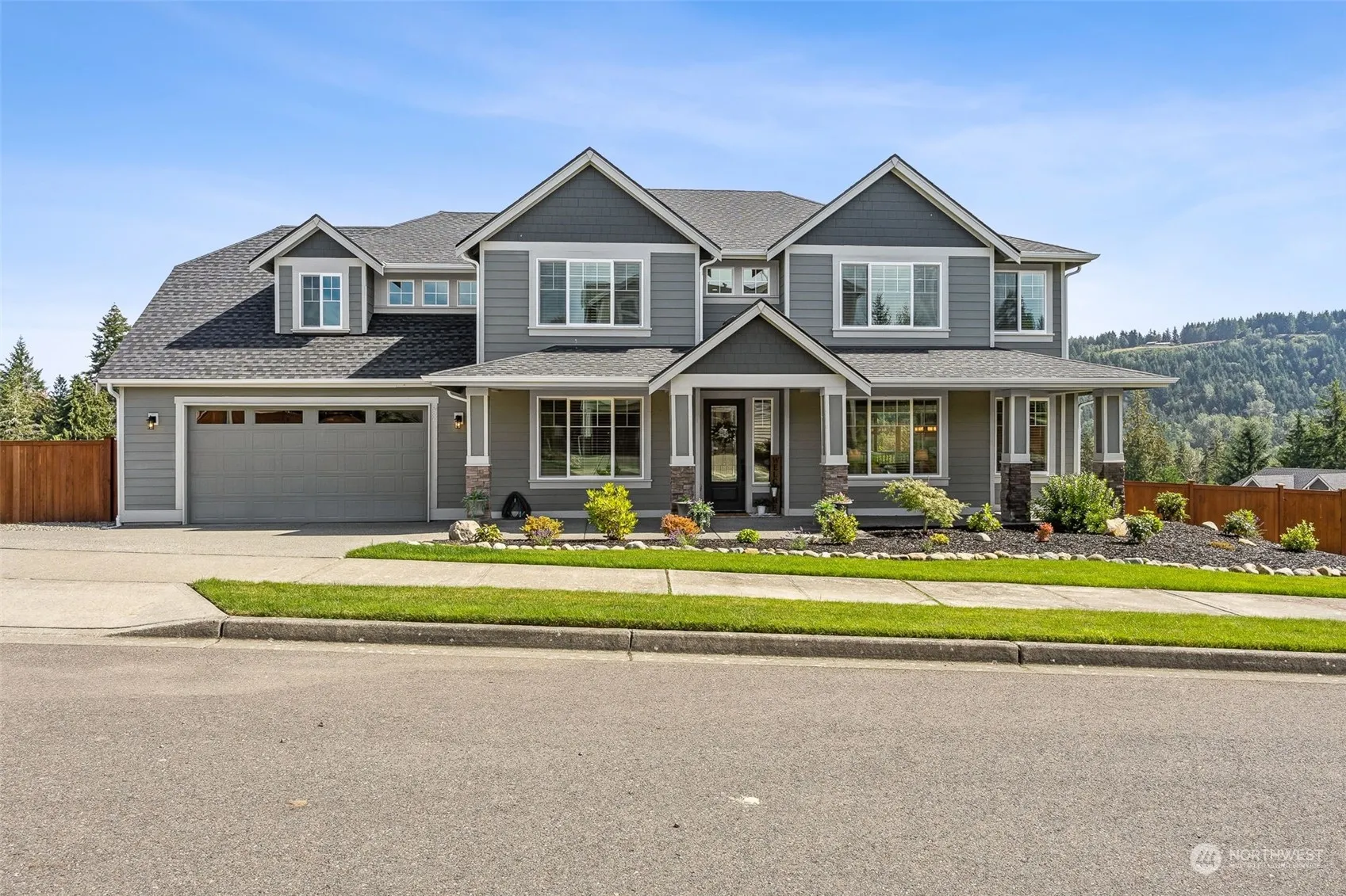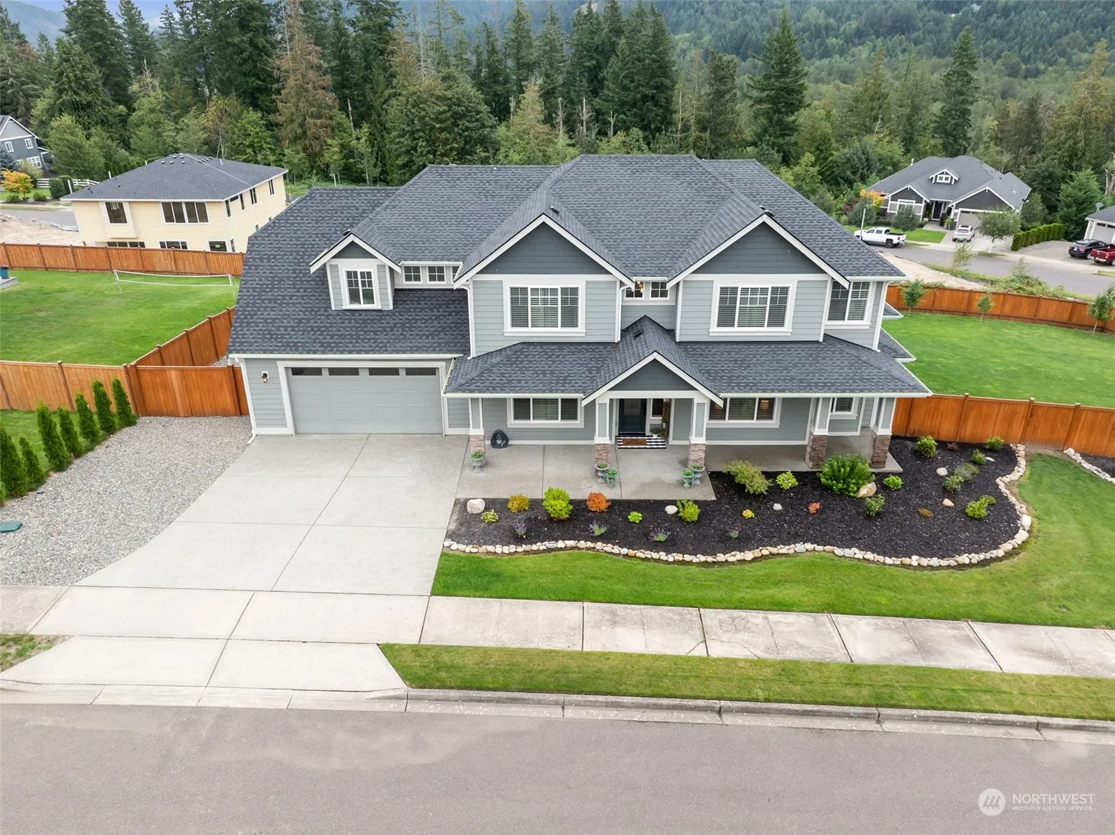 This 2020 resale is better than new! Perched on over half acre corner lot in Buckley’s sought-after Elk Heights “hill top” neighborhood! High quality finishes & modern design, complimented by natural light dancing throughout the home. Open living & dining areas include a gourmet kitchen & covered patio with fireplace. Enjoy the view of a big-star-sky and the rich tree tops framing Mount Rainier. Versatile floor plan includes office/den with closet on main floor & bonus room with closet upstairs for 5th bedroom options. Fully fenced back yard, enclosed RV parking, & sprinkler system. Fantastic location minutes from schools, parks, Foothills Trail, WA165 & WA410. Buyer Home Warranty + furnishings negotiable + 2025 HOA Dues covered by Seller!