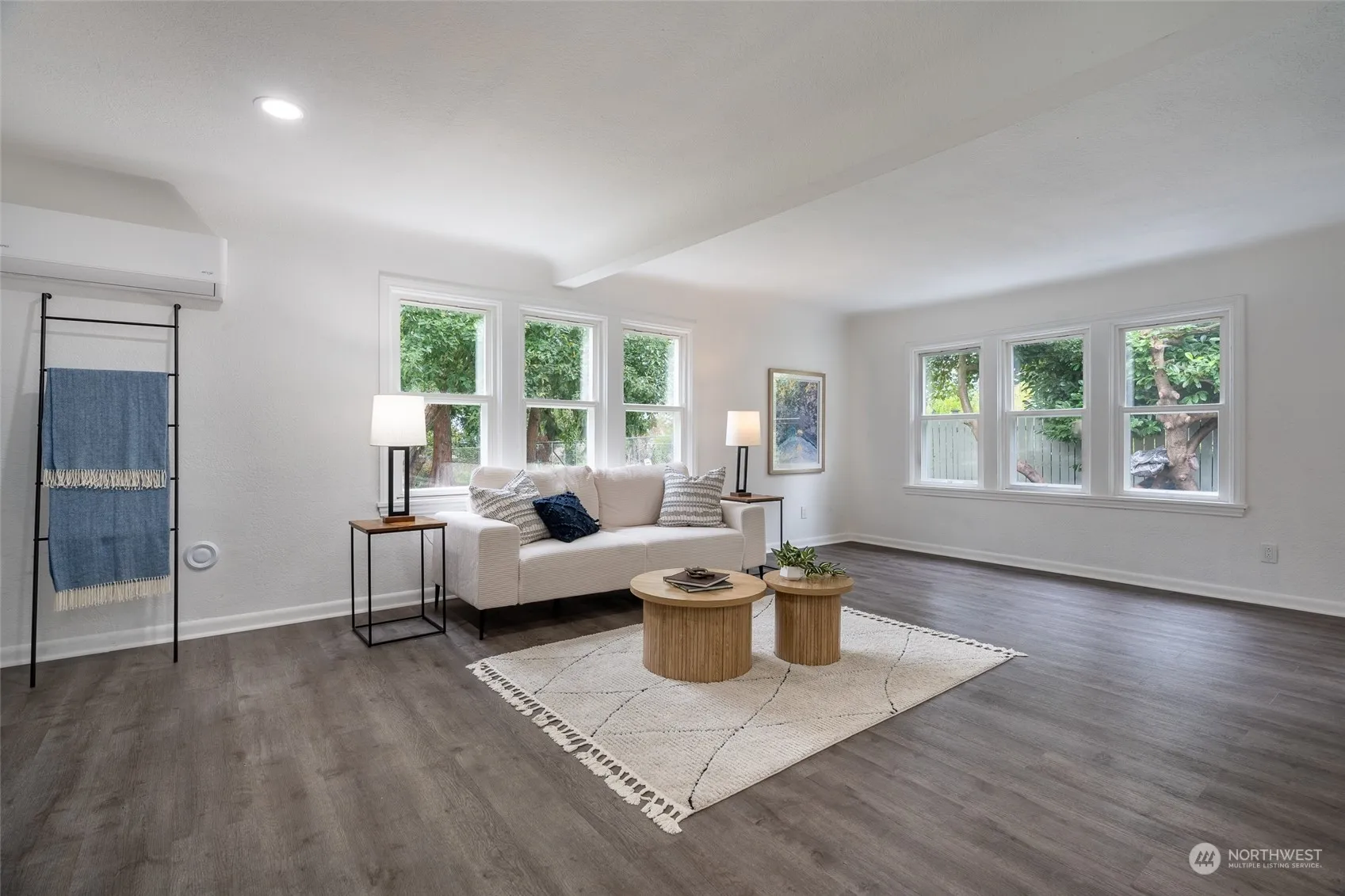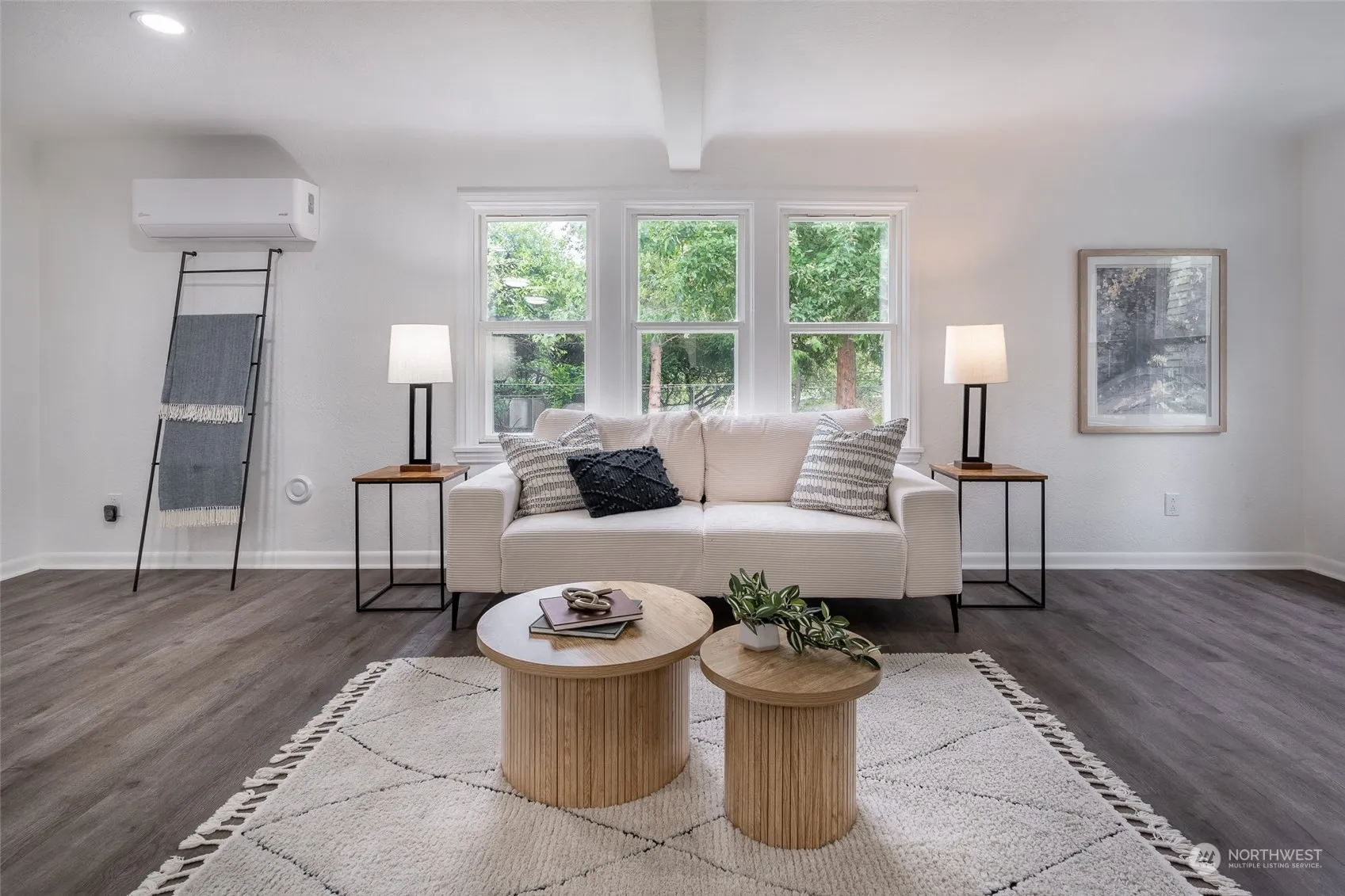Big Price Drop!! 1 1/2 story home in the Noble Acre Gardens Addition of SeaTac, 3 bd, 1.75 ba, 1,150 sq ft of living space. New LVP flooring adorns every room. 4 ductless mini splits for heat/AC!! Airport windows keep the outside noise to a minimum. The living room comes with a modern electric fireplace. Kitchen w/new shaker cabinetry w/soft close drawers, quartz counters, SS Appliances, LVP flooring, new fixtures and more! Updated main floor bath. Main floor guest bedroom. 2 upstairs beds, a beautiful 3/4 bath and storage area. Outside, new landscaping and walkway along with a fire pit, patio furniture, and storage shed, included in the sale. Electric car charger at the nw corner of the house. ADU a possibility. Brand new roof. Hurry!