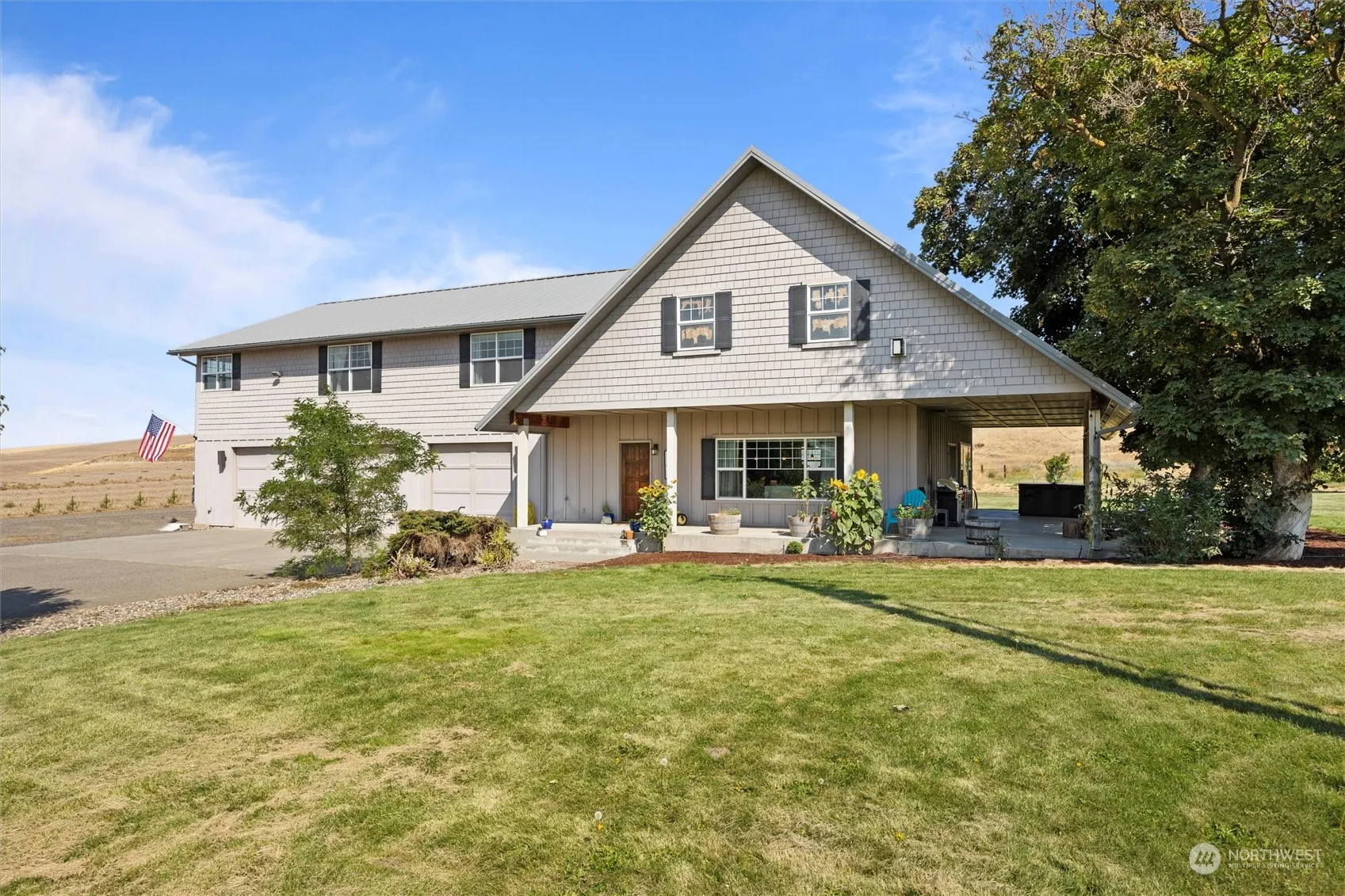 Country living without hassle. Sitting on 1.45 acres, this manageable piece of Walla Walla County just maybe the escape to the country you’ve been waiting for! Boasting a fabulous remodeled home, with desired updates; open main floor plan, custom kitchen cabinets you’ll love, huge closets, master suite with large walk in shower, upscale stainless kitchen appliances, cathedral ceilings with exposed beams. Huge covered patio with hot tub, built in fire pit, you’ll be the place for entertaining friends! The massive garage has plenty of room to double as a shop if one desires. Dog run with door into garage for your furry friends. Lots of room to bring your panels and create your own livestock set up! Just 20 min. from Walla Walla!