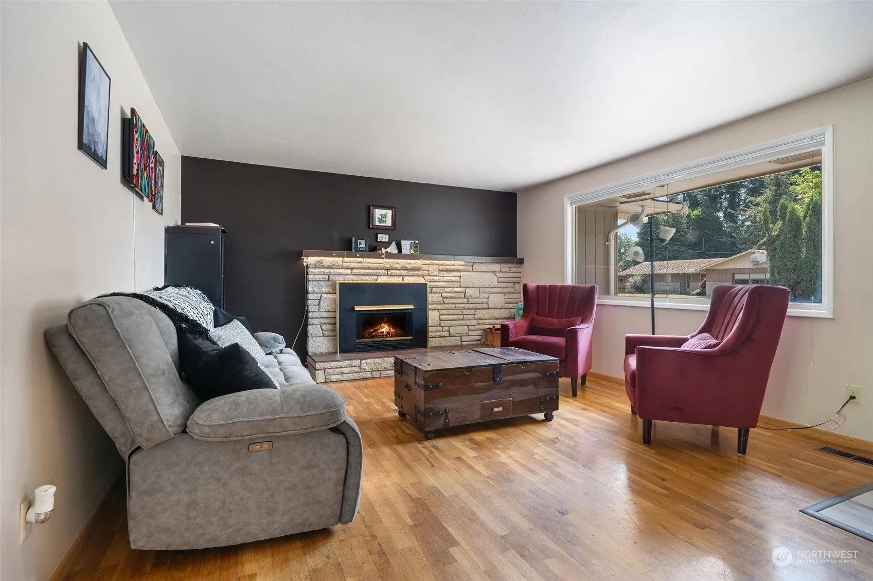 Rambler located in a great location! 2 blocks from the Tumwater High School and nearby I5 for easy access. 3 bedrooms, 1.5 baths, living room, family room, dining room, kitchen w/eating bar, hardwood flooring, gas fireplace insert and forced air furnace. Home EV Charging Station in the 2 car garage. Fenced back yard with shed, covered patio and an apple tree.