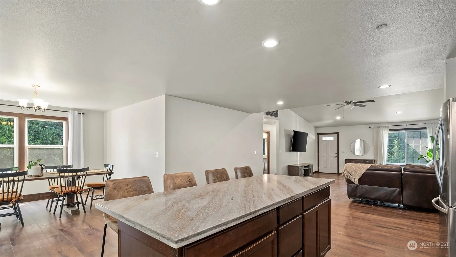 Wake up to scenic views of Ohop Valley and Mt. Rainier every morning. Spacious open floor plan with a large kitchen and island making it the perfect home for entertaining and modern living. Featuring vaulted ceilings, granite counter tops and brand new flooring. The back patio offers serene relaxation and privacy overlooking the valley. The double driveway is a piece of the historic old Mountain Highway. This home is located on the site of the Historic fine dining restaurant and hotel “Ohop Bob,” a cherished landmark that served as a gathering place for the community from 1917-1965.