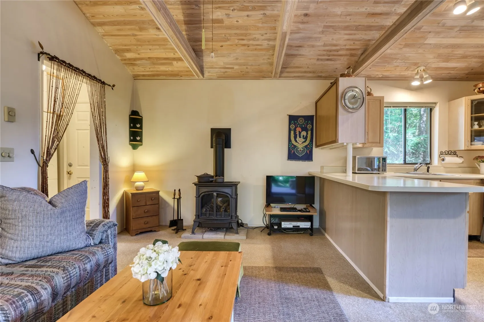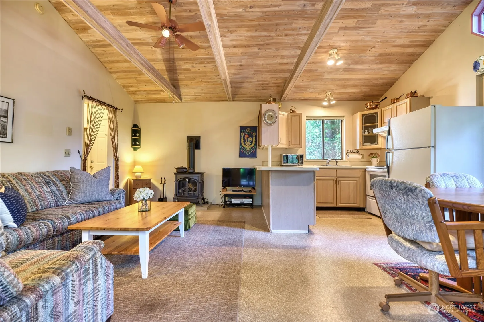 Escape to the serene woods of Point Roberts to this quaint home situated on a private lot, featuring 1 bed and 1 bath. This well-maintained property offers a bright open concept layout with large windows and vaulted ceilings with beautiful wood paneling. Views from every window of beautiful evergreen trees, and a large covered deck that could be enjoyed every season. Don’t miss out on this great turn-key property in the heart of Point Roberts. Only 30 minutes from Vancouver, the perfect vacation oasis or all year around home.