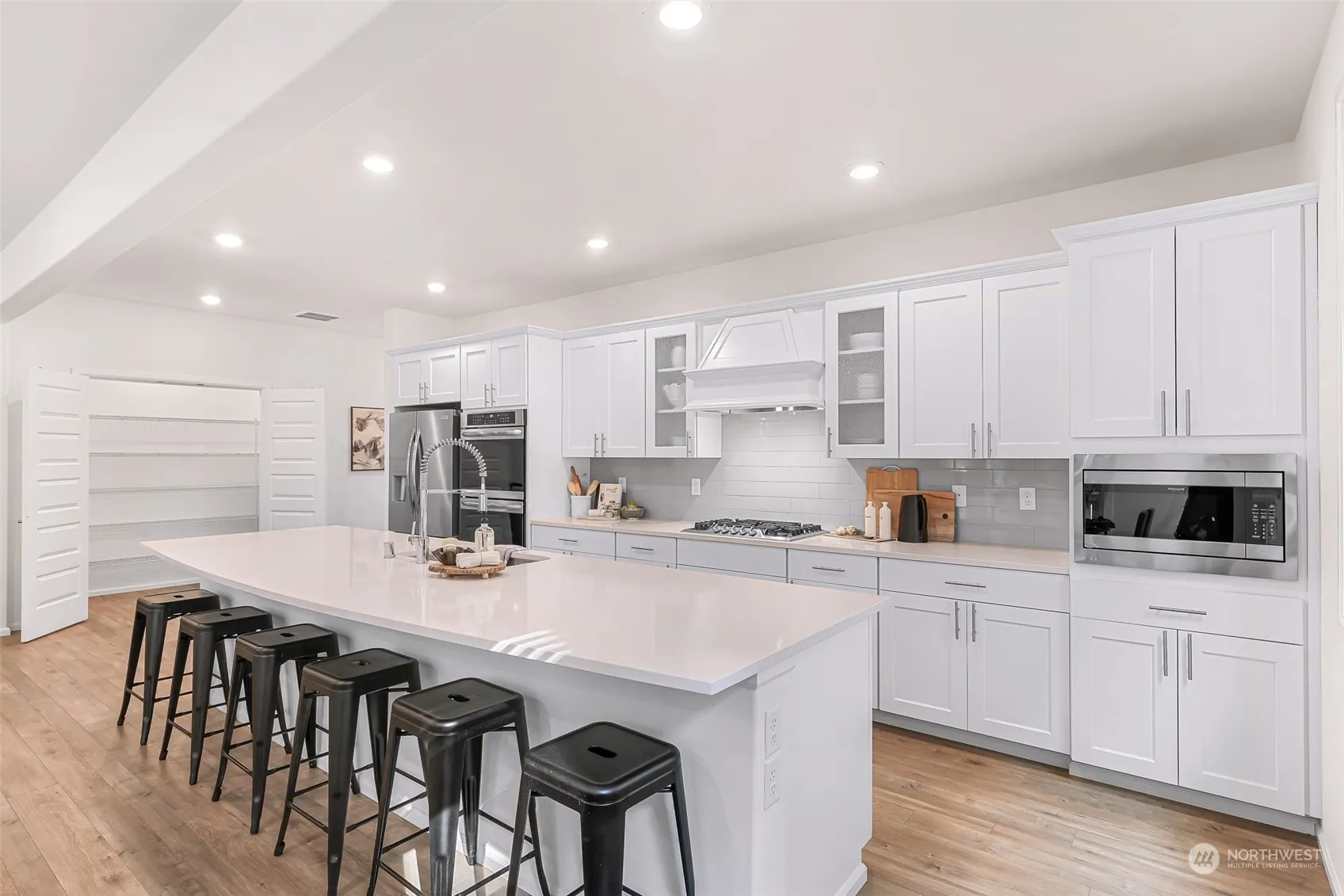 Located in the sought-after Tahoma Ridge community with Highly Rated Tahoma Schools, this stunning 5-bed, 3.5-bath Craftsman offers a rare main-level bedroom with an attached 3/4 bath. The open layout features soaring ceilings, large windows, and a striking open rail staircase. The impressive chef’s kitchen features quartz countertops, stainless steel appliances, Huntwood cabinets, an oversized island, double ovens, gas cooktop, and a huge walk-in pantry. Retreat to the luxurious master suite with a spa-like 5-piece bath and spacious walk-in closet. The 5th bedroom doubles as a great bonus/rec room Additional highlights include central heat, a cozy gas fireplace, and a huge laundry room upstairs. Close to dining, retail, parks, & trails.