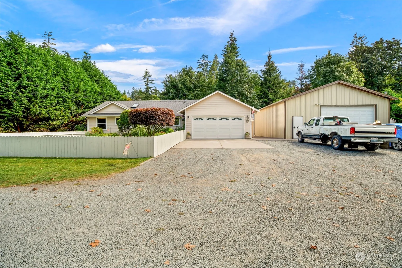 Rare find, newer rambler on large corner lot w/ huge detached shop, this property has it all! Gardener’s DREAM on level, shy acre w/commercial greenhouse, pergola, raised beds, fruit trees & more. Large 20×60 patio w/ hot tub hookups, perfect for backyard gatherings. Great rm w/vaulted ceilings & skylight, propane FP & open concept design. Island kitchen w/upgraded shaker cabinets & appliances including 5-burner propane range w/convection oven + pantry. Wood laminate floors in main areas. Three spacious BR’s + den/guest rm. Primary suite w/ attached bath w/ tile floors & tile shower surround, walk-in closet. Wide, accessible doorways throughout. Heated & insulated 30×36 shop w/ power on separate meter & built in air-line. No HOA. Must see!