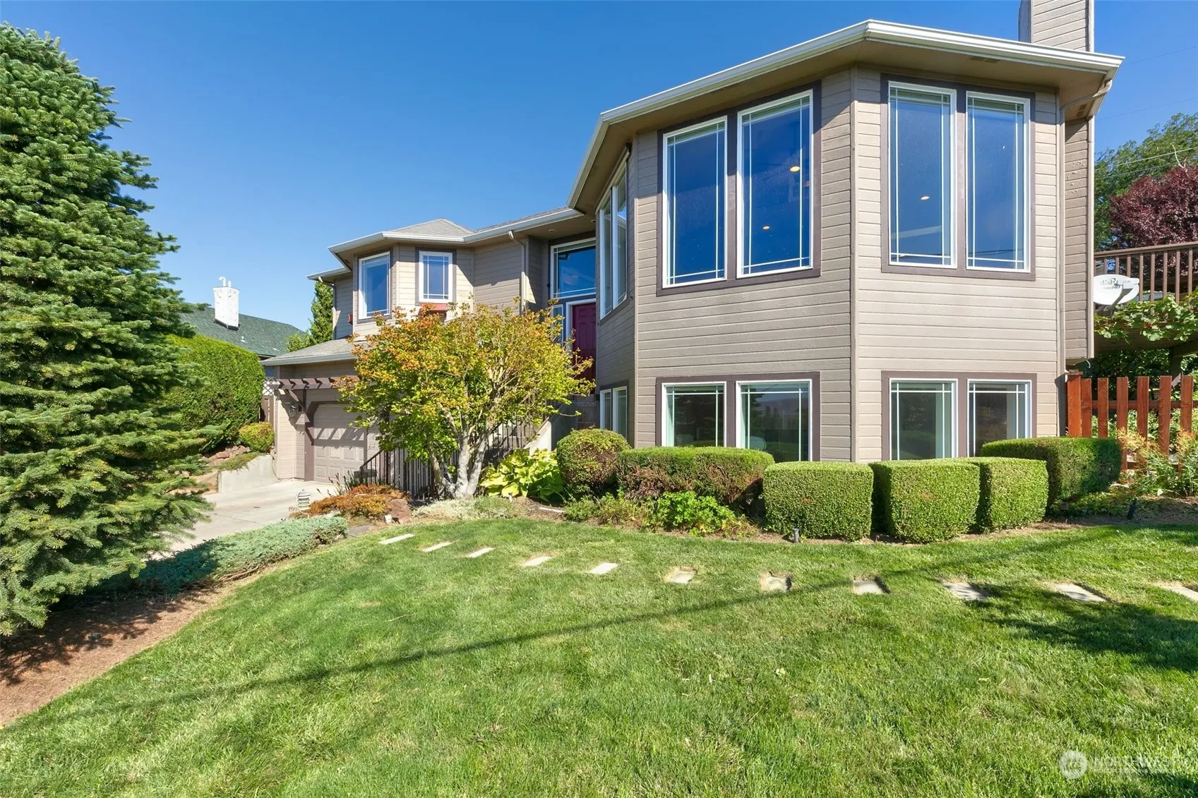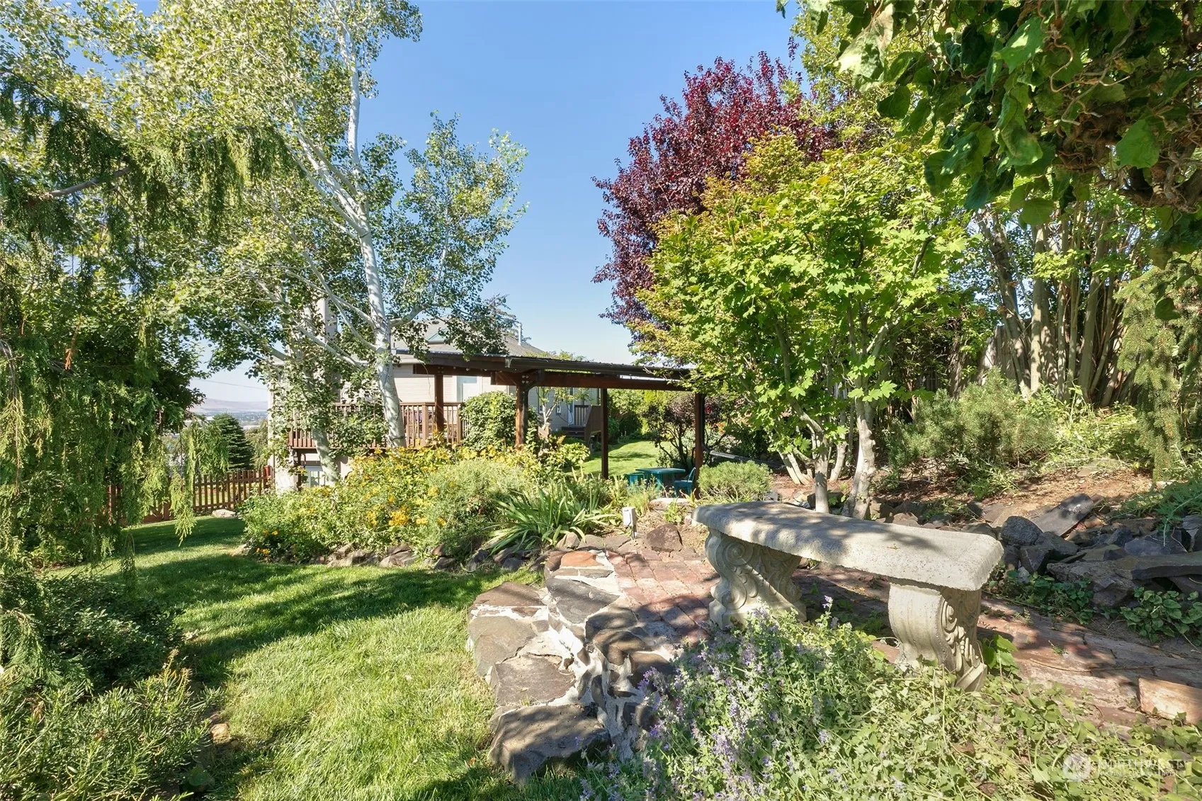 Welcome to this stunning 2,447sf home w/beautifully landscaped 1/4ac lot, w/breathtaking views of the Yakima Valley & Mt Adams. Upper-level features luxury vinyl plank flooring, dream kitchen w/granite counters, custom wood cabinets, & SS appliances, illuminated by natural light from a skylight. The DR, w/tray ceiling, flows into a sunken LR w/gas fireplace, vaulted ceilings & oversized windows framing panoramic views. The primary BR is a serene retreat w/large windows, tray ceiling, & luxurious ensuite bath. Downstairs area includes: gas fireplace, 3rd BR & full bath, ideal for MIL suite or guest quarters. Fully fenced backyard is an oasis w/spacious deck, gazebo, & cascading rock waterfall: a perfect blend of luxury & natural beauty.