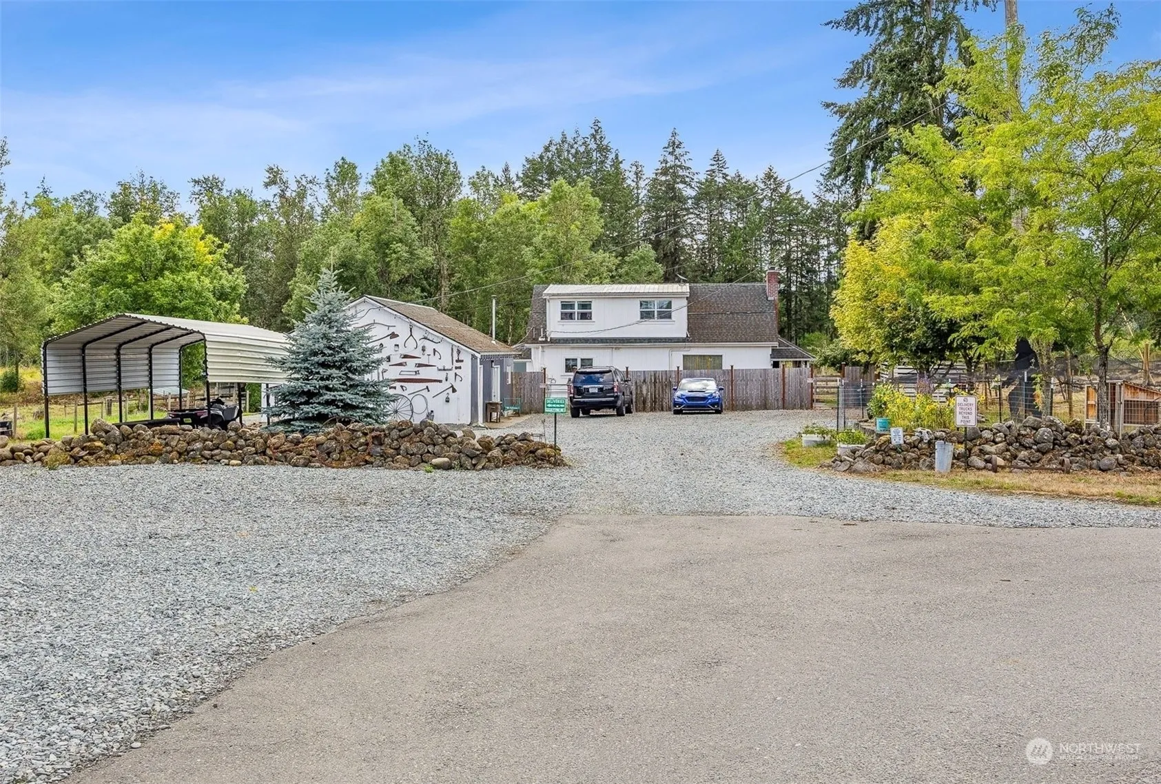 Opportunity abounds on this 40 acre homestead and equestrian property! The gated paved drive leads onto the grounds where you’ll step back in time as you enter the adorable and historic farmhouse built in 1900 w/2 bdrms, 1.75 baths, den & bonus rm. A second home offers 2 bdrms, 2 baths and is a permitted ADU. Huge barn w/cattle chute for livestock or even entertaining. Property boasts arena, barns, shops, sheds, kennels, pastures, paddocks, tack room & RV parking. Wooded trail to another clearing in SE corner w/road access via McKenna Forest Reserve. Potential to build that dream home or maybe even subdivide! Buyer to verify. Ask your broker for listing attachments & photo gallery w/captions for all the details. 2 much 2 list!!