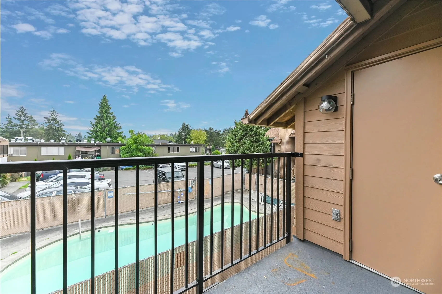 **AMAZING PRICE! CHEAPER THAN RENT!** FIRST TIME Home Buyer or Investor ALERT! Amazing top floor unit w/view of pool for a fantastic price. One bed, one bath, with upgraded and freshly steam-cleaned carpets and newer laminate in kitchen and bath. Spacious and light layout – large slider to big deck. Fresh paint throughout. Big storage space off deck. Newer water heater. Designated parking spot. Convenient with easy access to bus lines, hwys, shopping in Burien, restaurants and more. No rental cap! Low HOA dues. Laundry on-site. This is affordable and a great opportunity to own vs. rent! Great starter home that is move-in ready – make updates as you want to make this special property truly your own! No special assessments pending.
