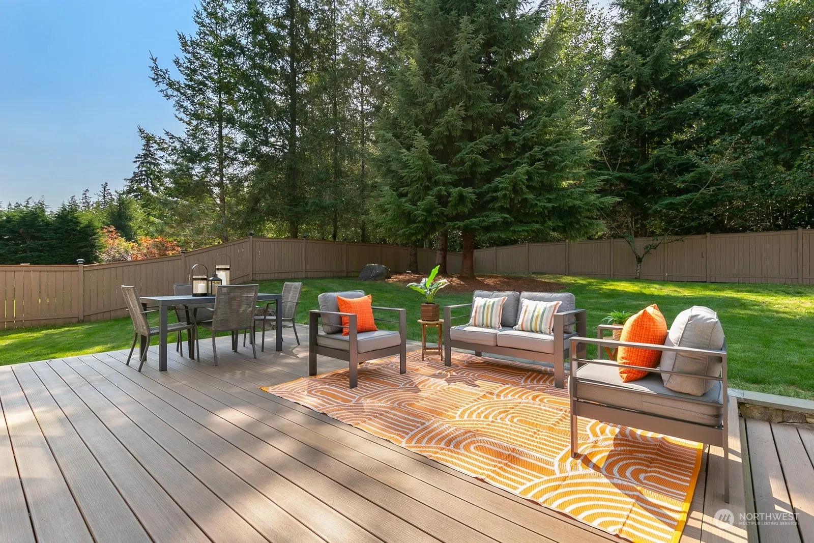 A private greenbelt oasis in the heart of the Ridge, close to everything. On a quiet street yet centrally located close to shops, restaurants, trails, parks, top-rated Cascade View Elem, this well-cared for CamWest home presents one of the largest fenced backyards in the entire neighborhood! An ideal layout w office/den on main floor, large family room open to remodeled kitchen &eating nook, formal dining w seamless indoor/outdoor living thru sliding doors to oversized deck into the stunning backyard showcasing a built-in BBQ area+firepit. Primary suite upstairs & 3 addtl bedrooms. Gigantic bonus/media room on top of the attached 2-car garage. Tons of natural light facilitated by the newer windows throughout. Large storage shed, central AC.