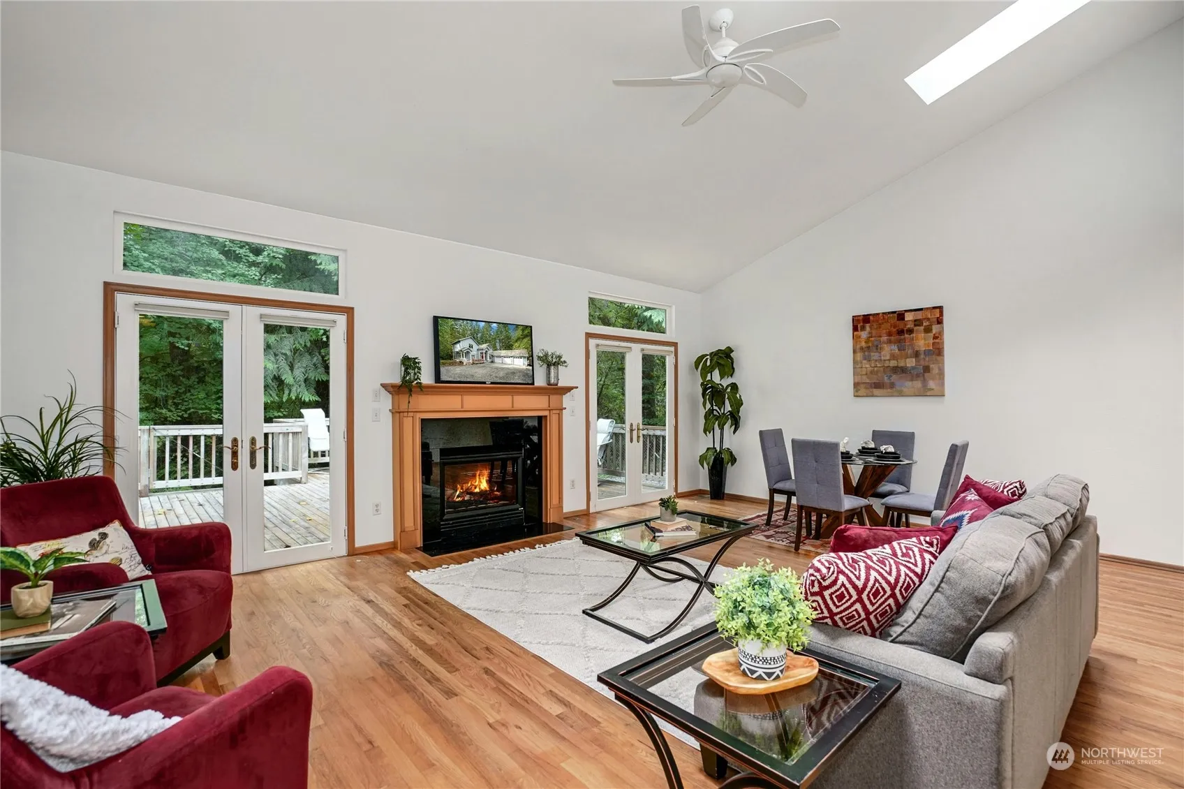 Spacious 3,070 sq. ft. home on 5+ acres of designated Timberland. Enter thru covered porch and Main floor offers eat-in kitchen w/counter dining, office area, walk-in pantry, Utility/Laundry Room, + access to large 3-car garage. Bright/spacious Living Room w/skylights opens onto huge deck thru French doors, for indoor-outdoor living. On one side of Living Room, Primary Bedrm offers full bath+ walk-in closet. On the opposite side, another generous sized bedrm w/abundant natural light and large closet, w/second full bath down the hall. Upstairs, the main house includes bright and spacious loft area. Attached ADU has its own private entrance, complete w/full bath, spacious bedroom, eat-in kitchen, living room and first floor office.