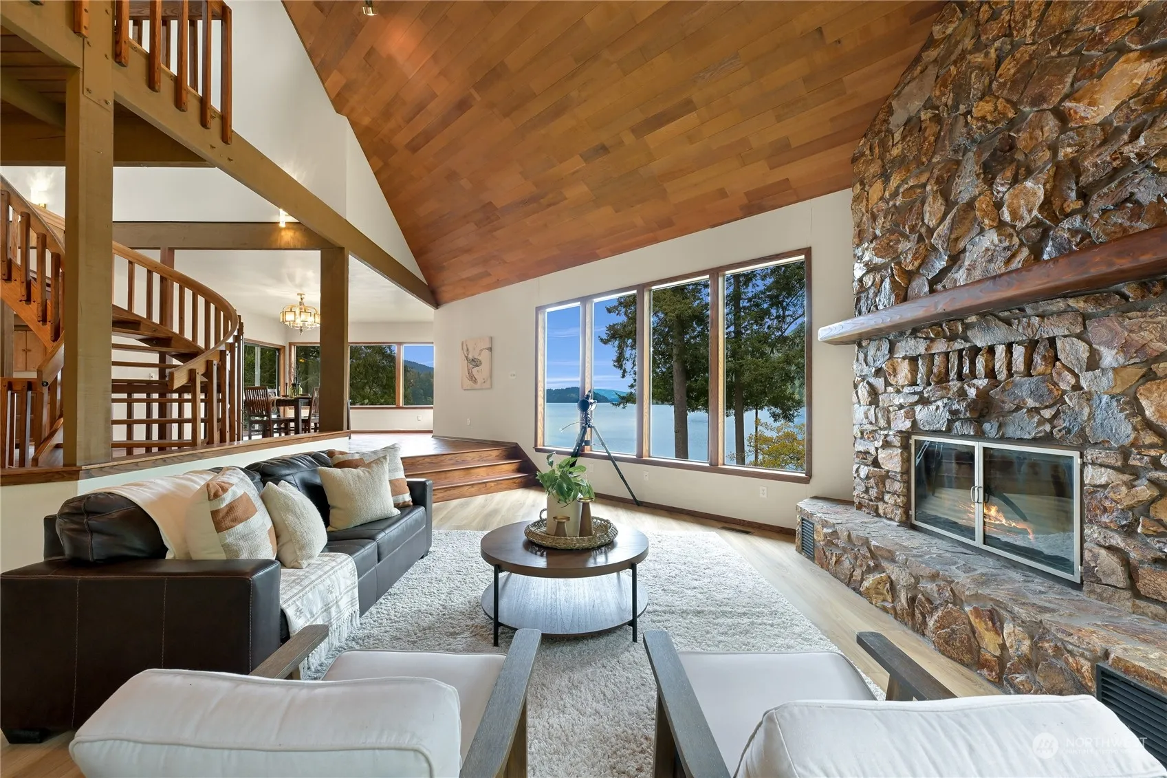 Truly a legacy property, “WHISPERING CEDARS” on Lake Whatcom in coveted South Bay, is now offered for the first time in over 25 years. Accessed by a long meandering drive through towering cedars & rhododendrons, this serene 2.5 acre property is a sanctuary in nature. The 5,200 square foot custom home is positioned on a point with 240 feet of shoreline where expansive water & fjord-like mountain views are absolutely breathtaking. The nearby trails & creeks offer a refreshing alternative after soaking up the summer sun on the dock and multiple decks. Features include an open floor plan for entertaining, beautiful wood throughout, a stunning spiral staircase, a massive stone fireplace, plus much more. A PROPERTY FOR GENERATIONS TO ENJOY!