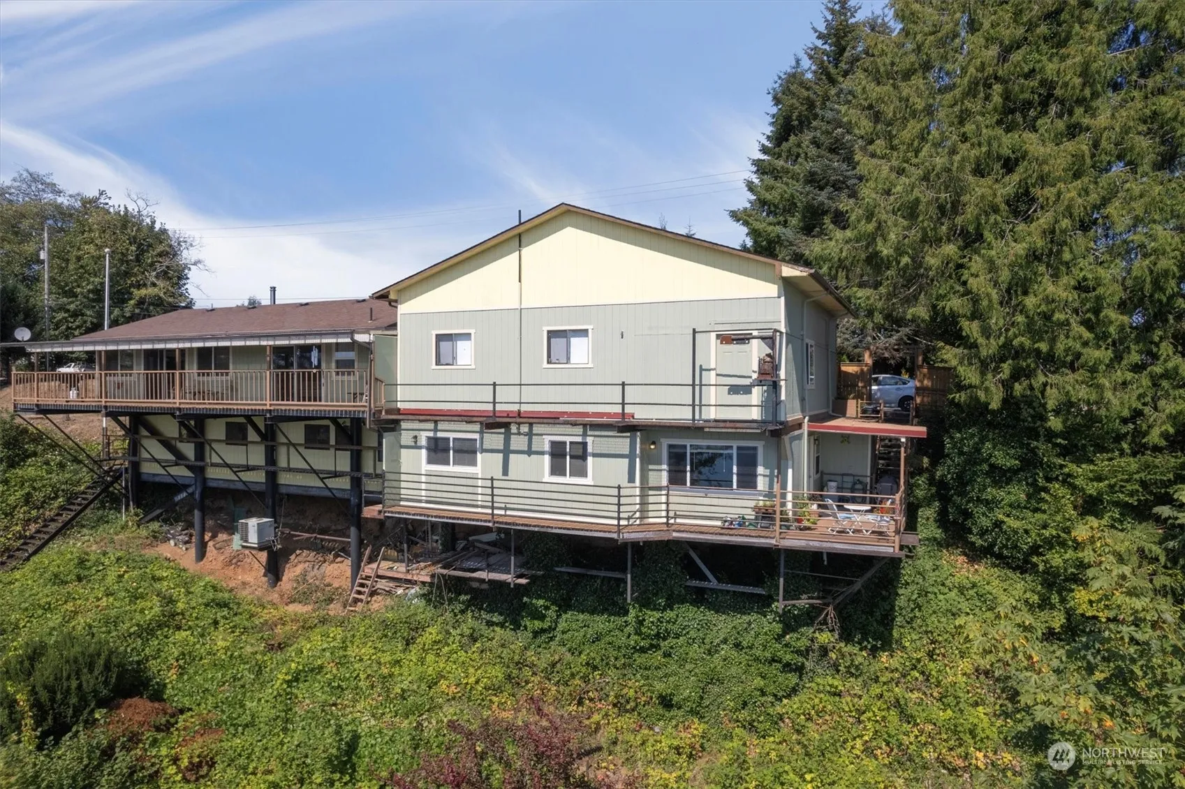 Indulge in breathtaking views of the Columbia River, unwind on your deck and observe eagles and river traffic while enjoying the tranquil atmosphere. This stunning Cathlamet home is ideal for multi-generational living. Main level offers 2 bedrooms, 2 bathrooms, elegant kitchen, comfortable living room and dining room for gatherings. The lower lever features a bonus space that could serve as a bedroom or office with its own bathroom. Additionally there is an unfinished space primed for transformation into another separate living space, and a fully remodeled apartment with separate entrance and new appliances, offering an opportunity for supplementary income.