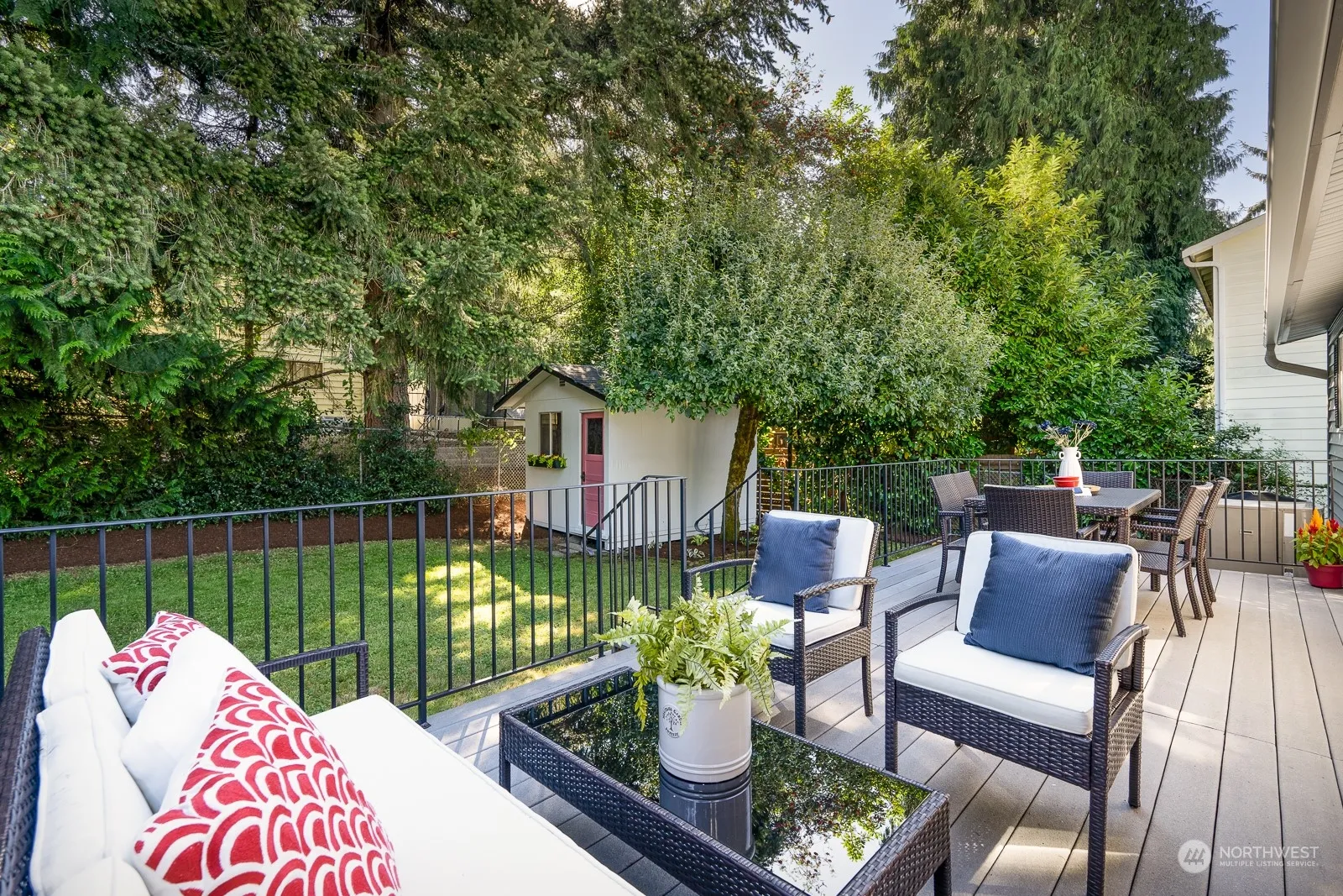Dreams of an idyllic backyard spending sunny weekends gardening, playing or simply relaxing are ready to be made a reality. Refreshed and move-in ready, a rambler that’s both functional and modernized. Enjoy a spacious layout with 2 living spaces, 2 fireplaces and large windows throughout. Fantastic kitchen with new countertops and ample storage, perfectly positioned overlooking deck and backyard. Expansive deck for entertaining and lounging. A detached shed/studio waiting for your imagination. Enjoy central AC with heat pump and tankless H20. New roof coating and tons of upgrades throughout. Large 2-car garage with excellent storage. Fab location: minutes to I-5 and new light rail, plus shopping, parks, schools and deeded to Civic Club.