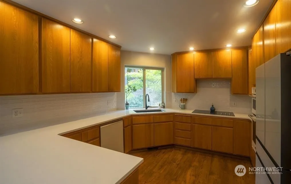 Newly remodeled lovely 2BR with den/office and 2 baths, overlooking the 10th fairway. Beautifully updated with new quartz countertops throughout, new appliances, new carpet & kitchen LVP, neutral paint, light fixtures, sinks, faucets, etc., plus new $22,000 Carrier high-efficiency heat pump system with all the bell & whistles and smart thermostat. This home has vaulted ceilings and open spacious feel. A woodburning fireplace will keep you toasty on chilly nights and enjoy watching wildlife that surrounds you. There’s a roomy 2-car attached garage and an additional golf cart garage. Sunland lifestyle includes access to the community beach, clubhouse, pool, tennis and pickle ball, all for $350 a year! Condo fee $492 mo, Sewer/Water $128.33 mo