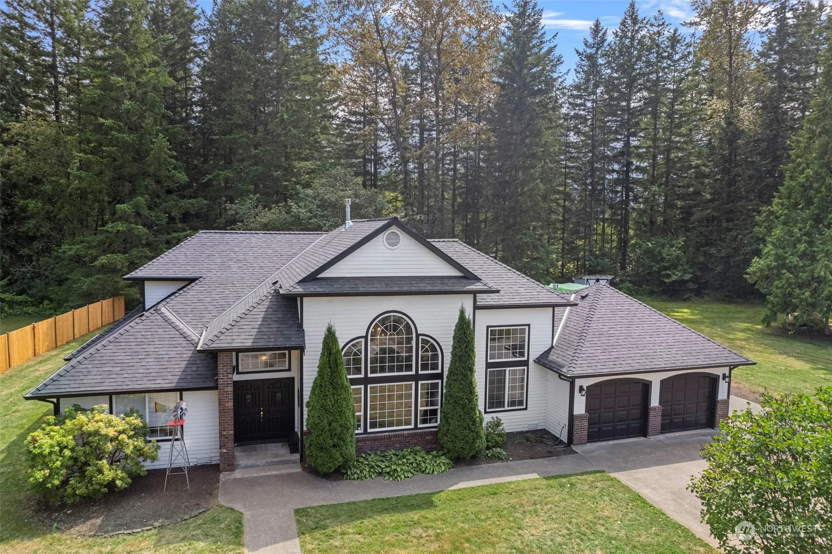 Stunning 5-acre gated entry estate. Perfect blend of Elegance, Functionality, and Privacy. [4 bed/3 bath, den/office, w/main-level primary suite. 17-ft ceilings, double-sided fireplace, and Lg view windows in living room. Spacious kitchen, oak cabinets and open layout that flows into dining room] New roof in 2024. [Equestrian enthusiasts and farmers alike will appreciate the fully fenced and cross-fenced pastures, 4-bay shop w/grow room, stable, multiple outbuildings, and whole house generator.] Gardens, Built-in BBQ area, backyard patio and hot tub, Koi pond with a waterfall, and trails through the surrounding pasture and forest provide a serene setting.[Short drive to the scenic North Cascades, Janicki Industries, Sedro-Woolley, and I-5]