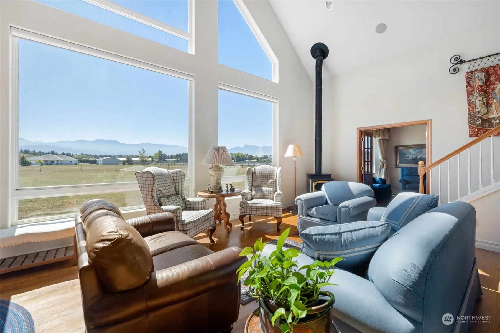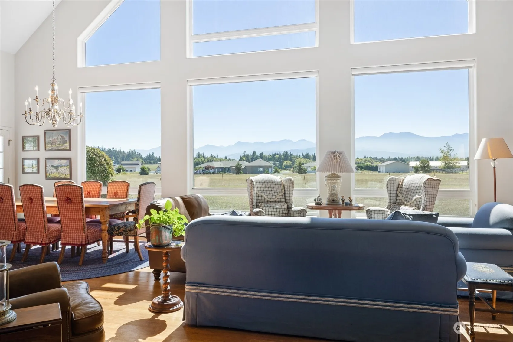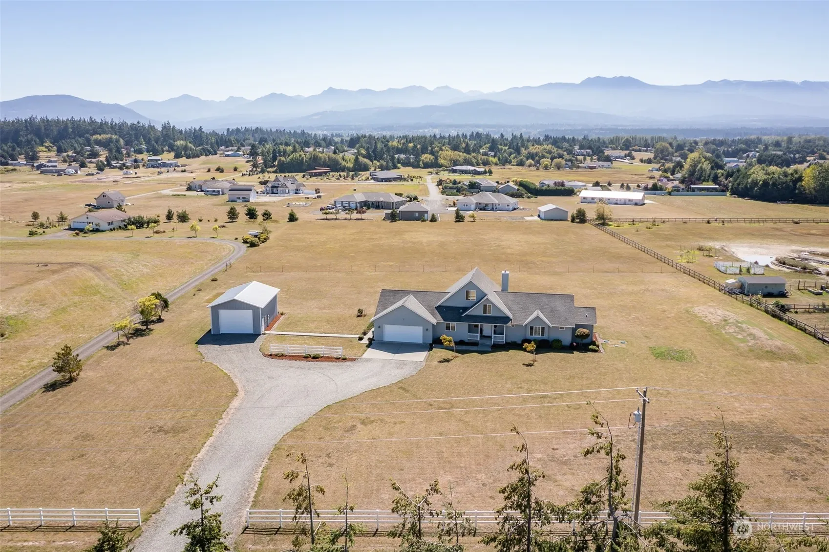 Stunning mountain view home and shop on 4.56 acres of dividable land directly across from the 216 acre Dungeness Recreation Area and Dungeness Spit. Direct access to miles of trails in one of the most beautiful locations in the Pacific Northwest. Jaw dropping views of the Olympic Mountains from nearly every room including an incredible great room area with towering floor to ceiling windows bringing in the southern sun. Multi-purpose loft and handsome library between the great room and primary bedroom. Primary BR features French doors out to private back deck to sit and enjoy the world class views. Office off of the kitchen area and large laundry room w/sink.