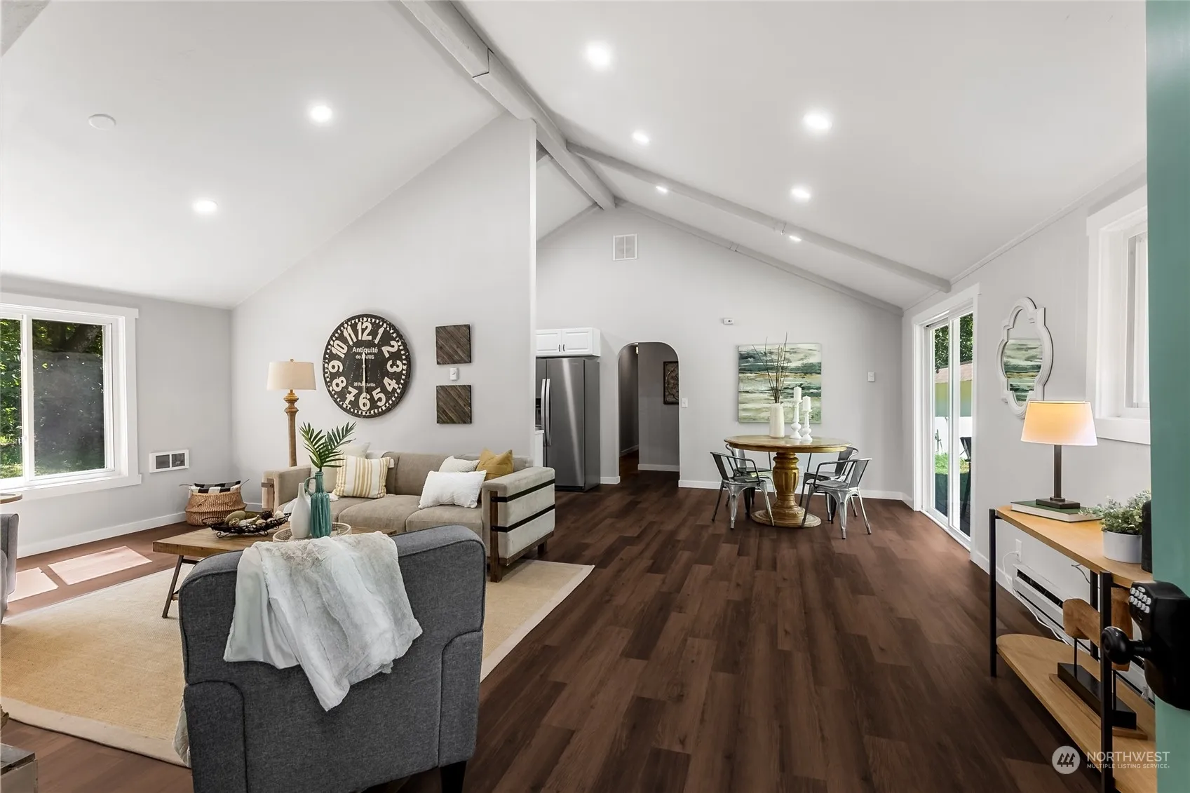 First time on market in over 30 years and completely remodeled for the next generation to enjoy. Home sits on private 1.03 acre parcel in a quiet community. Garage (384 sq’) and addt’l outbuilding/shop not included in sq footage. Property has underground water storage tank and propane tank for any future need to be off grid or prep for emergencies. Three blocks to the Yelm-Rainier-Tenino Trail, used annually for STP Ride. 25min bike ride, or 8min drive to heart of Yelm, The Farmer’s Market and Tahoma Valley Golf & Country Club. Updates: roof, electrical, plumbing, all parts of kitchen & bath, appliances, heaters, LVP flooring, paint, lighting. Ample space to park RV, boat, toys, grow food, tinker with hobbies. Show up, unpack, you’re home.