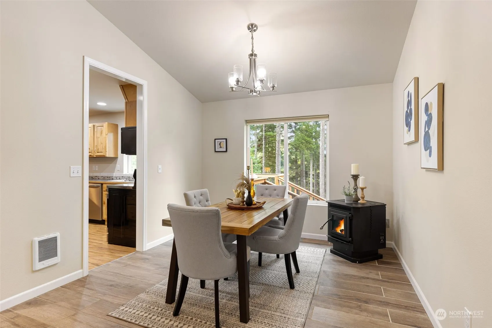 Nature Lover’s Haven! Immerse in tranquility as you paddle your kayak down the serene canal to spring-fed Trails End Lake. Watch eagles soar while fishing year-round in this pristine, stocked lake. Gather clams and oysters or beachcomb on private Hood Canal beach access. This 2015 home, updated & ready for adventure, features fresh paint, new appliances, and stylish fixtures. Enjoy this cozy 3 bed/2 bath home with cozy pellet stove, hickory kitchen cabinets & new stainless steel appliances. The spacious primary bedroom boasts an ensuite & walk-in closet. Relax on the massive back deck & fully fenced yard, savoring nature’s beauty with your morning coffee or evening beverage. Minutes from all amenities but like being on vacation every day!