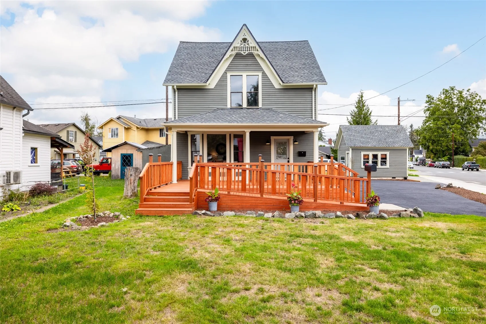 Situated in the heart of Monroe, this charming updated Victorian home boasts 3-bedroom, 1.75-bath in a prime location. The property features a spacious corner lot with ample driveway parking for up to 6 vehicles, off-street parking and additional an outbuilding and large deck with a built-in ramp for easy access. Inside, you’ll find freshly painted interiors, a cozy kitchen, and a private dining room highlighted by French doors and a bay window. The main floor includes a walk-in shower with washer and dryer hookups, while the upstairs you will find bedrooms, an attic for extra storage, and an updated bathroom with a classic clawfoot tub. Buyer can also take advantage of the “professional office” zoning and make this their new live/work.