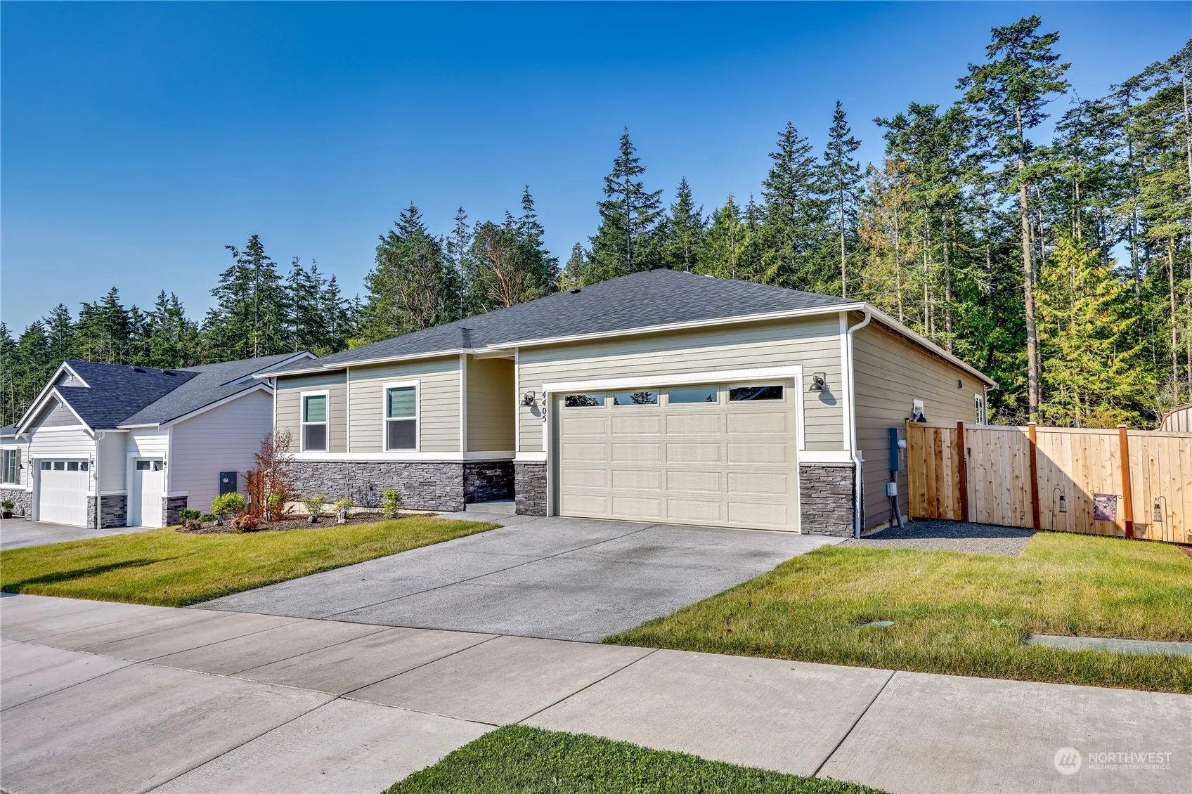 Welcome Home to this great rambler in special new neighborhood. Very open concept floor plan with 8 -foot doors and 10-foot ceilings offer’s great room with an electric fireplace, gourmet kitchen and oversized center island, electric appliances,3 ceiling fans, pendant lights, all new blinds and much more. The oversized primary suite boasts a large private bath, huge walk-in shower, double sinks and spacious walk-in closet with wire racking and shelving. 2 bedrooms with Study home also has large fenced backyard yard Surrounded by walking trails and close to town, trails, beach and more