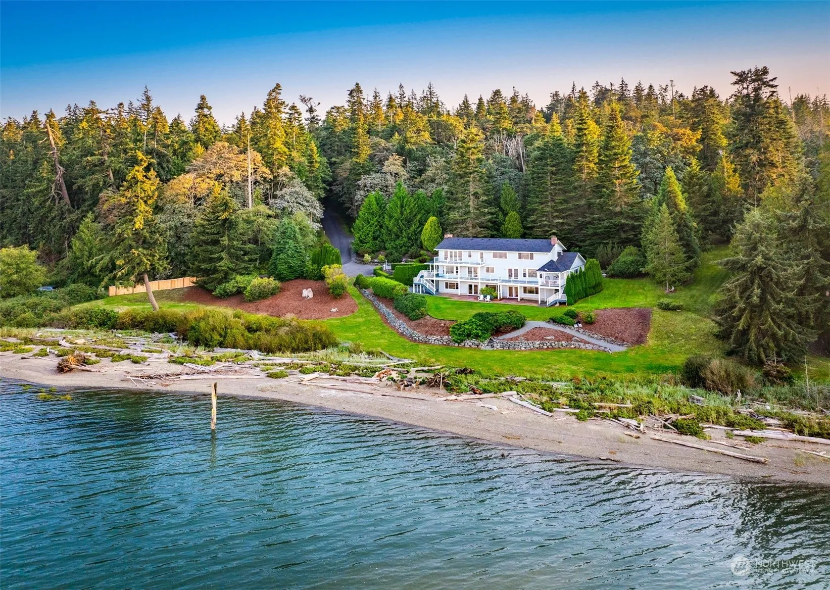 Step into the best that Canamo Island has to offer, where tranquility fills 2.5 acres with a breathtaking 255 ft. of private oceanfront living! This home creates the perfect PNW escape. The kitchen is a chef’s paradise with new appliances & ocean views. Enjoy the outdoors with a spacious back deck, offering year-round enjoyment. Fall in love w/ the upstairs primary suite w/ private deck access. Three additional bedrooms round out the home, each w/ a bathroom. Explore all this property has to offer; w/ a private beach, oceanside firepit, beautiful gardens, & views around every corner. Nestled next to a county park with over six acres of waterfront trails, this home is your gateway to nature’s wonders without sacrificing modern conveniences!