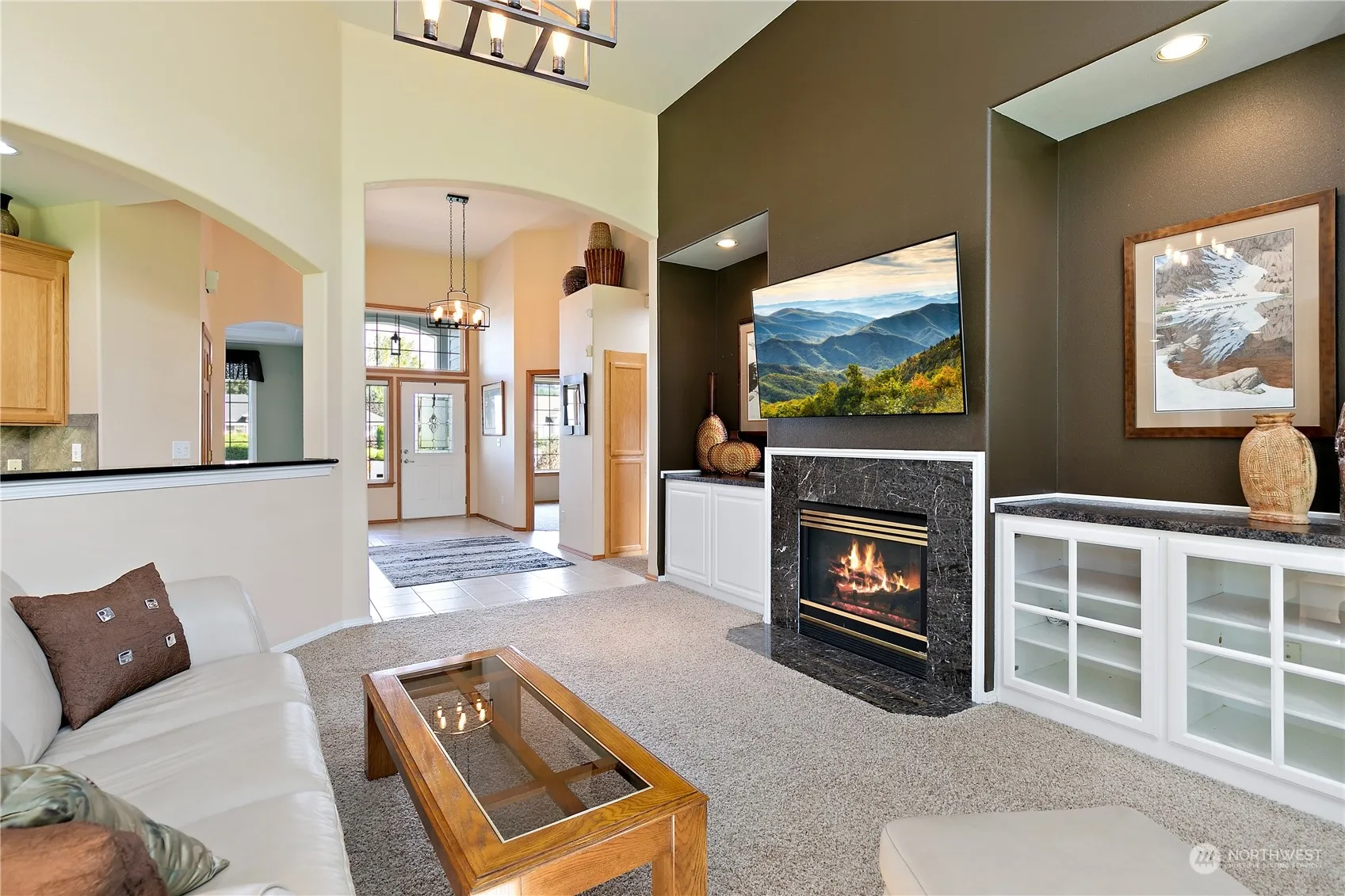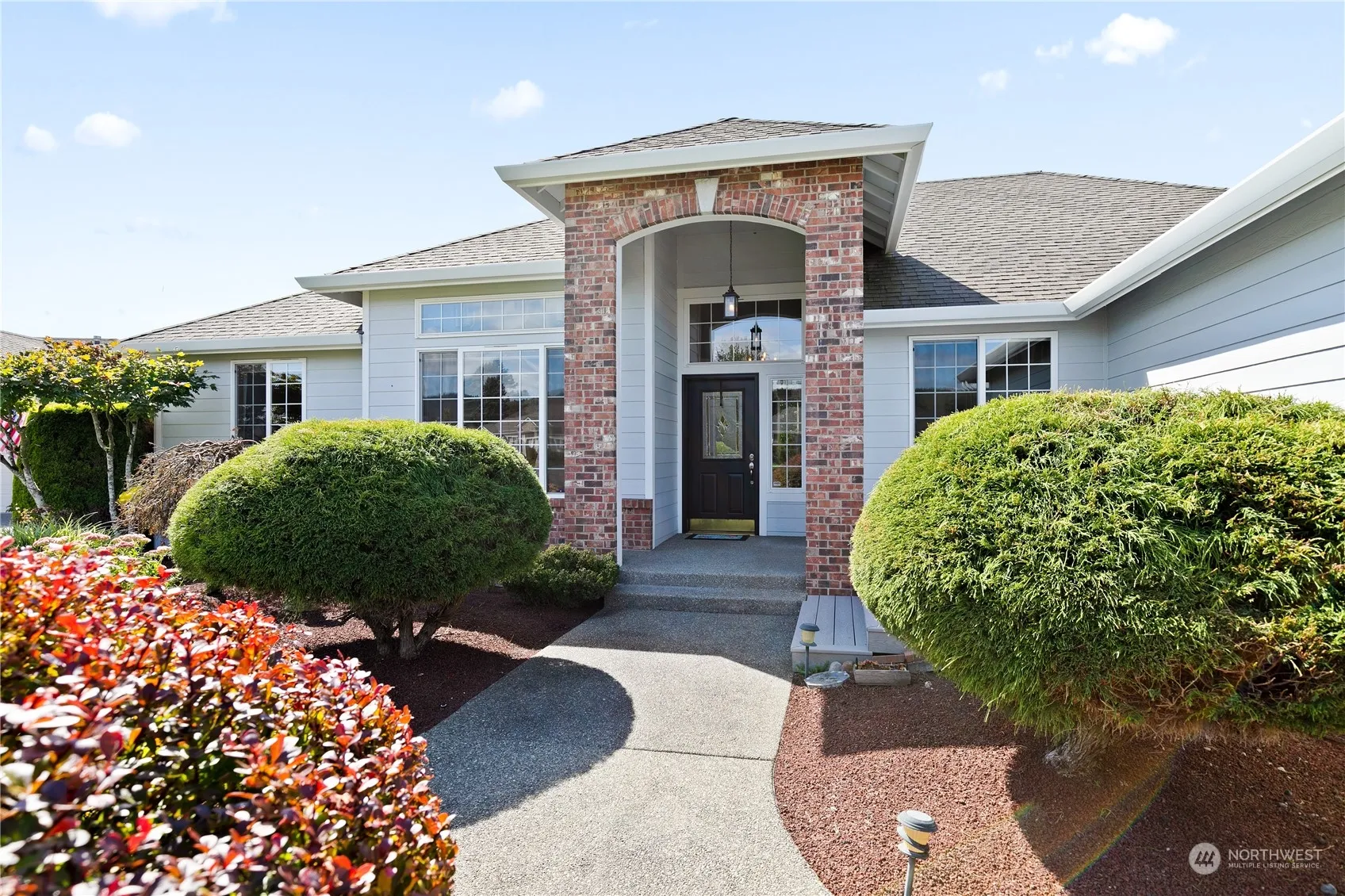 Welcome to your dream home in Orting! This meticulously maintained 3-bedroom, 2.5-bath gem offers stunning Mount Rainier views right from the front porch. Enjoy the open floor plan with a formal dining area and a bar, perfect for entertaining. The living room boasts high ceilings, a gas fireplace, and ample natural light. The modern kitchen features stainless steel appliances and a walk-in pantry. The primary bedroom is a true retreat with a 5-piece en-suite and walk-in closet. Additional highlights include AC, a generator, and a covered patio overlooking a spacious yard with mature landscaping. With an oversized lot, sprinkler system, and an attached 3-car garage, this home also offers quick access to golf courses, shopping, and dining.