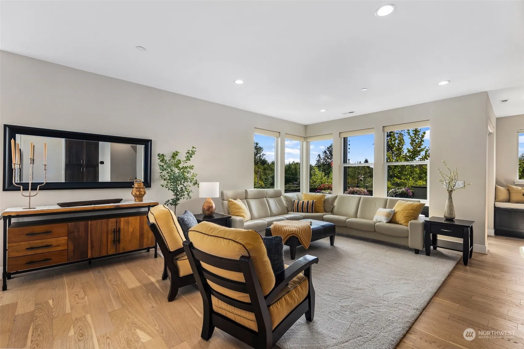 Stunning townhouse style condo located near downtown Duvall. A spacious corner unit with the ultimate modern lifestyle has a desired open-concept floor plan with 2094sf, 4 bedrooms, and 2 car garage. Every comfort and convenience was considered in upgraded features, including: 3 zone air conditioning & heat, extra insulation, solid hardwood doors, upgraded kitchen cabinets & appliances, hardwood floors, extra built-in storage cabinets & pantry, whole house water filter, faucet & propane connector on balcony, electric voice command shades, & more! A main floor ensuite bedroom or office, plus an idyllic private Primary Suite. Nearby is keyless entry clubhouse, gym, play area, parks, and trails. Pre-inspected and move-in ready.