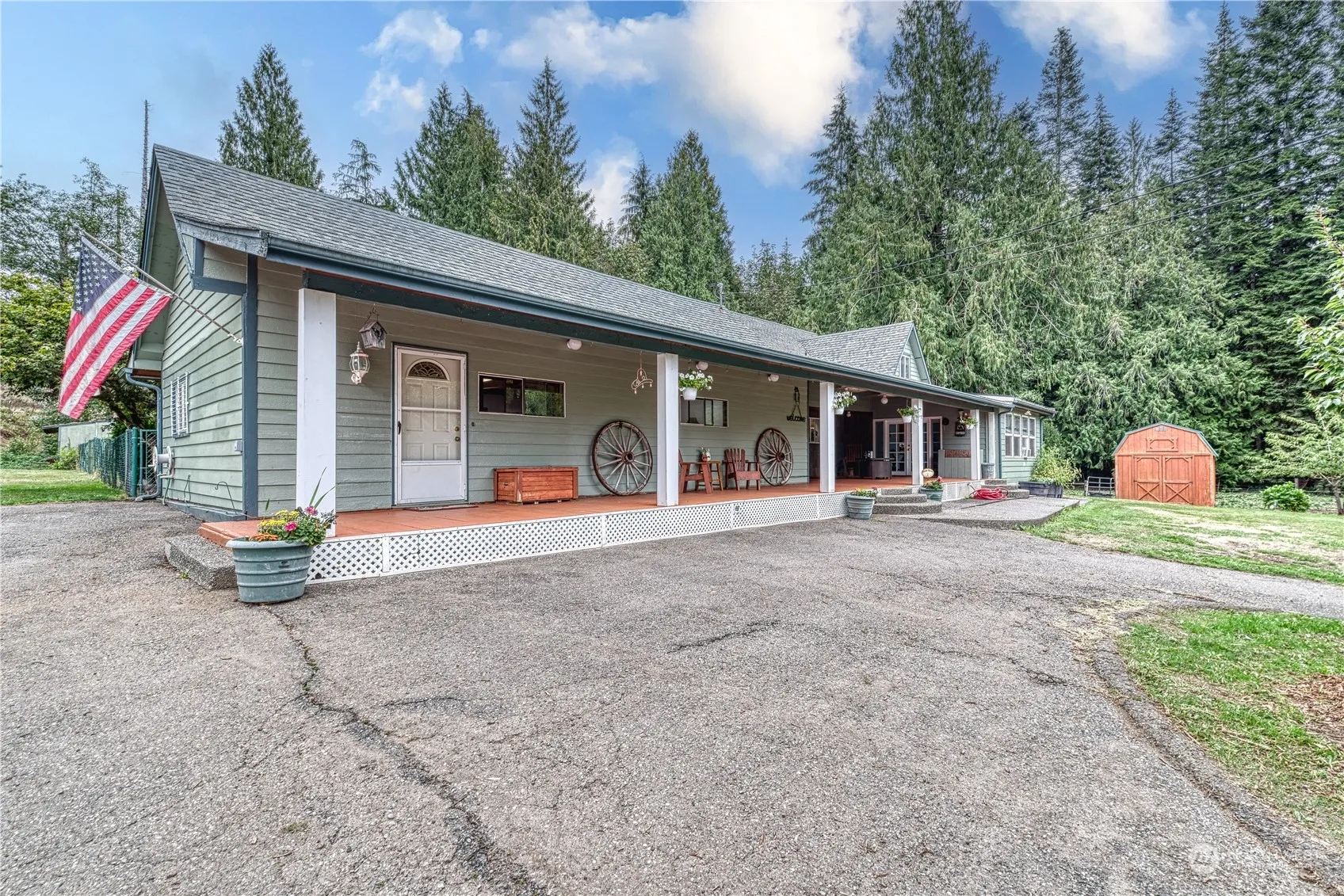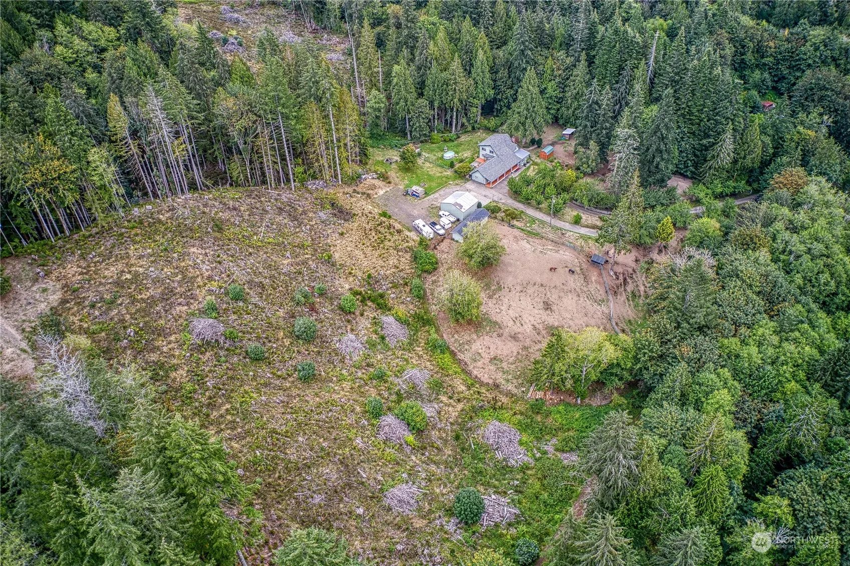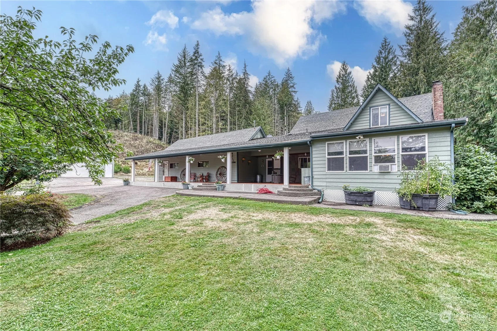 Introducing a meticulously maintained 15-acre equine-ready estate. Drive up the picturesque, tree-lined driveway to a charming covered front porch. This inviting home features 3 bedrooms, 2 versatile bonus rooms, a cozy living room with a wood-burning fireplace, a second family or flex room, a sunroom, and a spacious kitchen and dining area, complemented by a generous pantry/mudroom. Many upgrades include modern kitchen cabinets and flooring. The property boasts a large pasture with a 4-stall barn, an additional pasture with a lean-to and tack shed, and plenty of cleared space. Adjacent to forest land, the estate offers direct access to trail riding and walking. Additional amenities RV parking, Close to Hood Canal, and an 840 Sq Ft shop.