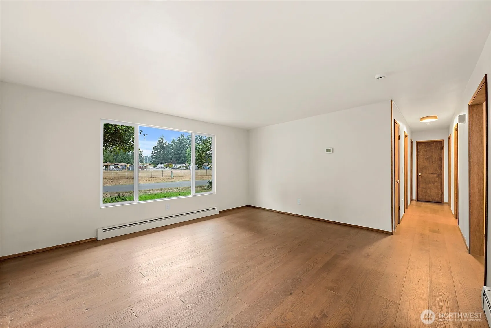 Elegantly updated rambler featuring 3 bedrooms, 1.75 baths, and a spacious den or home office. With 1,575 sq ft, a 1-car garage, RV parking, and no HOA dues, this home offers both style and convenience. Upgrades include engineered hardwood flooring, new carpet, designer terrazzo tile in both baths, and a chef’s kitchen with quartz countertops, farmhouse sink, island and hidden hood vent. The primary bath features a beautifully tiled, curbless walk-in shower. The heating is by radiant water heat (Hydronic baseboard heater- extremely safe). Fresh paint, updated lighting, new ceilings, and code-compliant electrical throughout. Set on a large, fully fenced lot in a desirable location—this move-in ready gem is not to be missed.