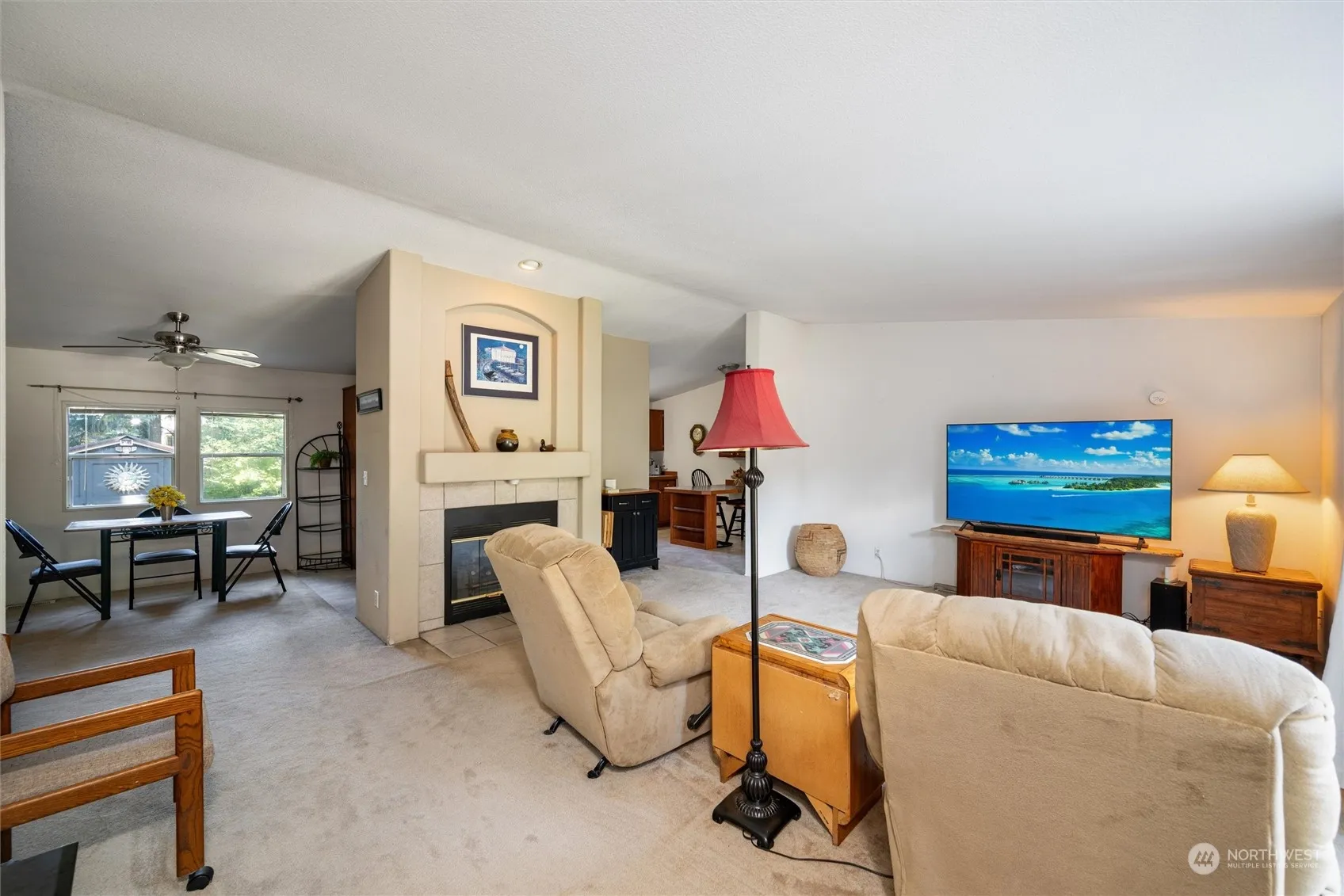 Spacious well maintained 3 bedroom, 2 bath home is situated on a huge flat double lot on corner with a secluded picnic and fire pit area to enjoy along with other outdoor fun, plus there’s 3 outbuildings and firewood ready for the 2 fireplaces inside too. Features inside include large living room with beautiful fireplace and lots of natural light. The kitchen has an abundance of cupboards and opens to the dining area with a newer wood stove to dine by. There’s lots of room in a 2nd living space in the family room off dining/kitchen area. King size master bedroom includes ensuite bathroom complete with soaking tub, separate shower and walk-in closet. An enclosed entry porch and a bigger enclosed deck in back are more spots to relax.