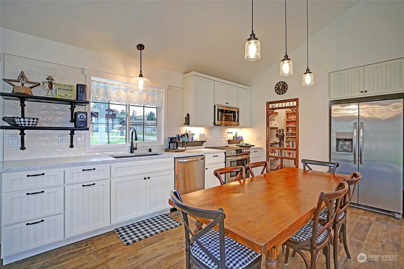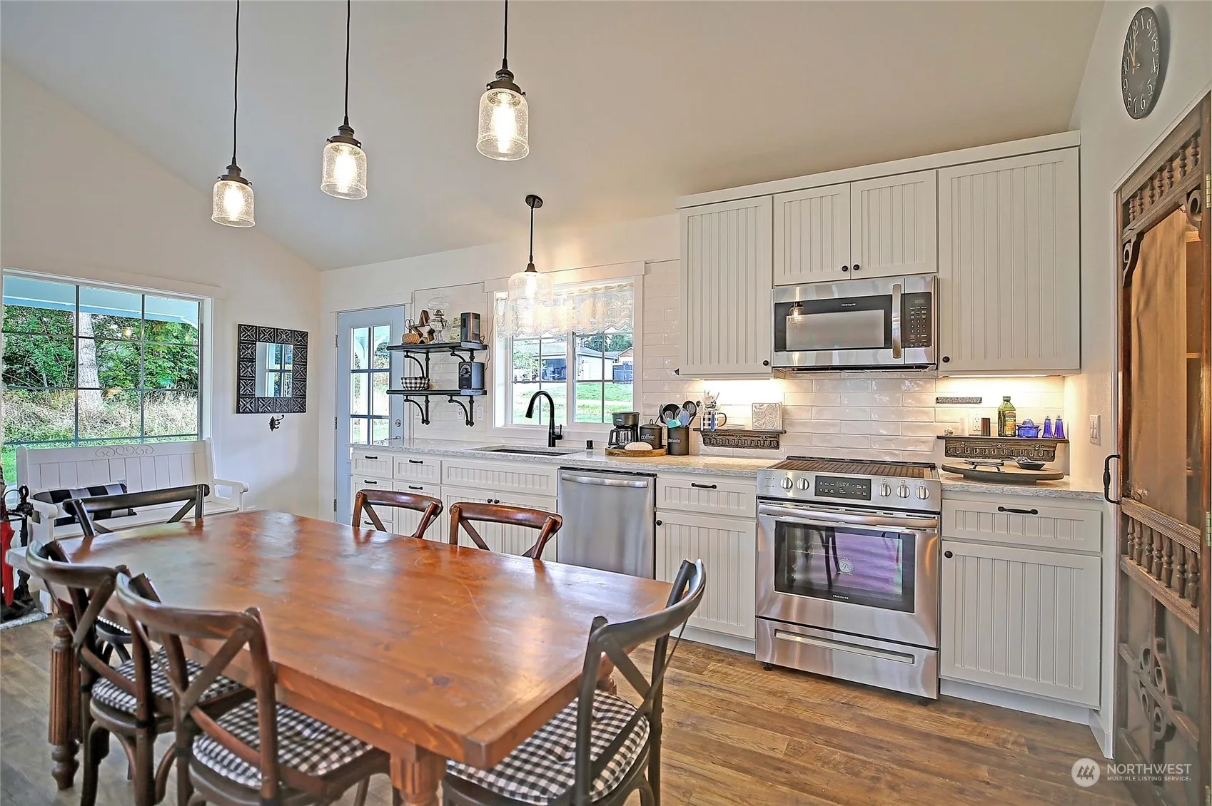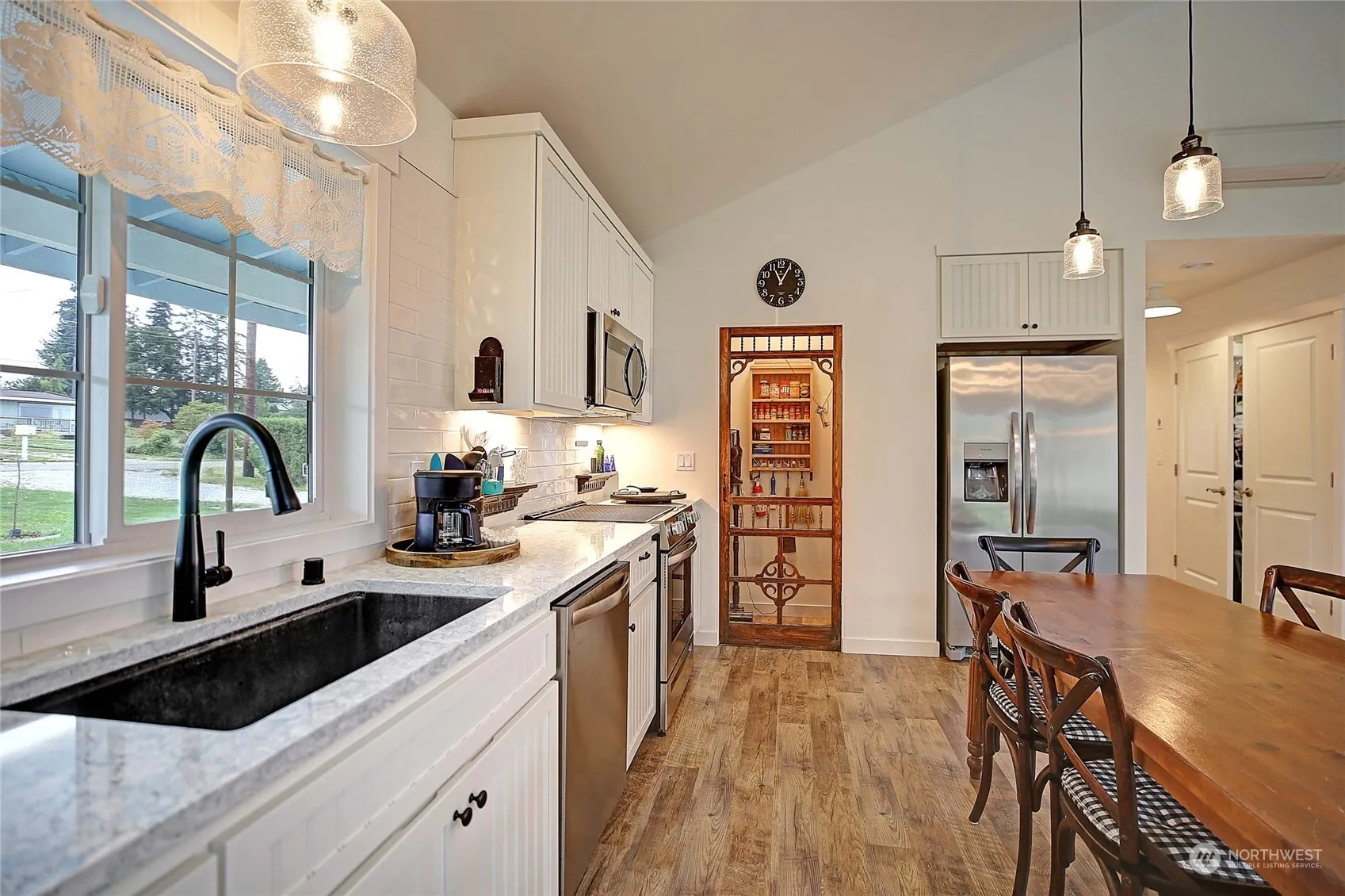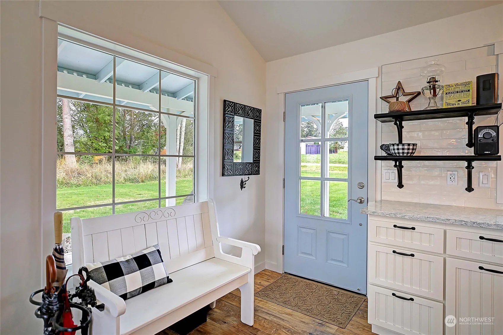Built in 2022 this delightful 1,166 sq ft rambler located in the sought after Country Club neighborhood is truly better than new. Professionally and thoughtfully designed, this 2-bedroom, 1 and 3/4 bath home is a true gem. The living room boasts a custom half-moon window from San Antonio and a unique cream limestone fireplace hand-carried from Texas. Take in stunning views of Port Susan and Mount Baker from this beautifully styled home. The farmhouse vintage charm shines through on the covered wrap-around front patio, featuring classic farmhouse lighting and a pale blue-green patio ceiling. Nestled on a quiet road with friendly neighbors, the home offers access to three beaches and an optional clubhouse membership.
