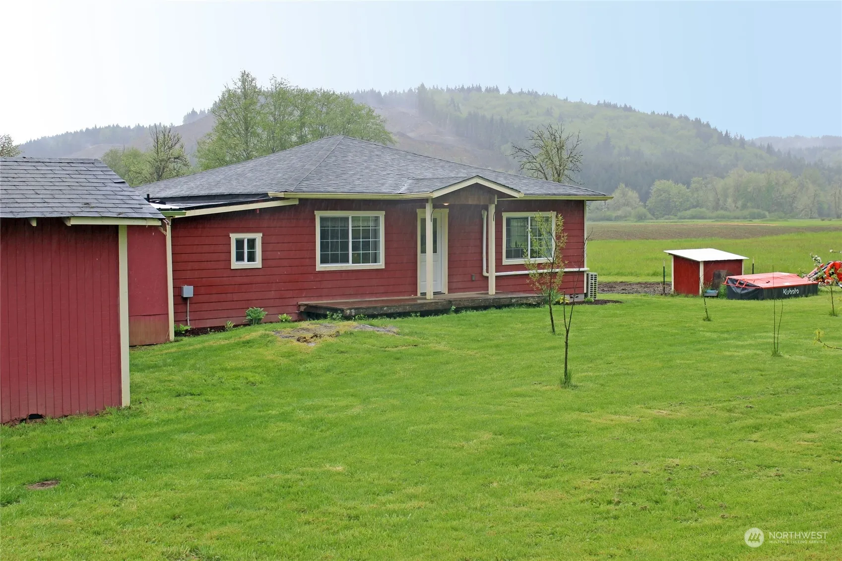Bountiful vegetable harvests & homeraised beef come from “Old MacDonalds” style country farm. 1+ acre Mini-farm. Includes a Huge walkin cooler for hanging meat, storing canned goods. Beautifully refreshed home has recent new siding, roof, flooring, kitchen cabinets etc. Nearly all of the older home has been nicely refurbished. Efficient mini-split for AC/Heat. Beautiful and scratch resistant “Fenix laminate” kitchen cabinetry. Laminate & vinyl plank floors. Private well feeds a Large reservoir to retain a good water “on demand” supply for gardens/livestock. Attached carport/workshop. In one of the most picturesque regions of Pacific NW. Remarkable views of surrounding farms and rolling hills from this fertile Oakville valley location.