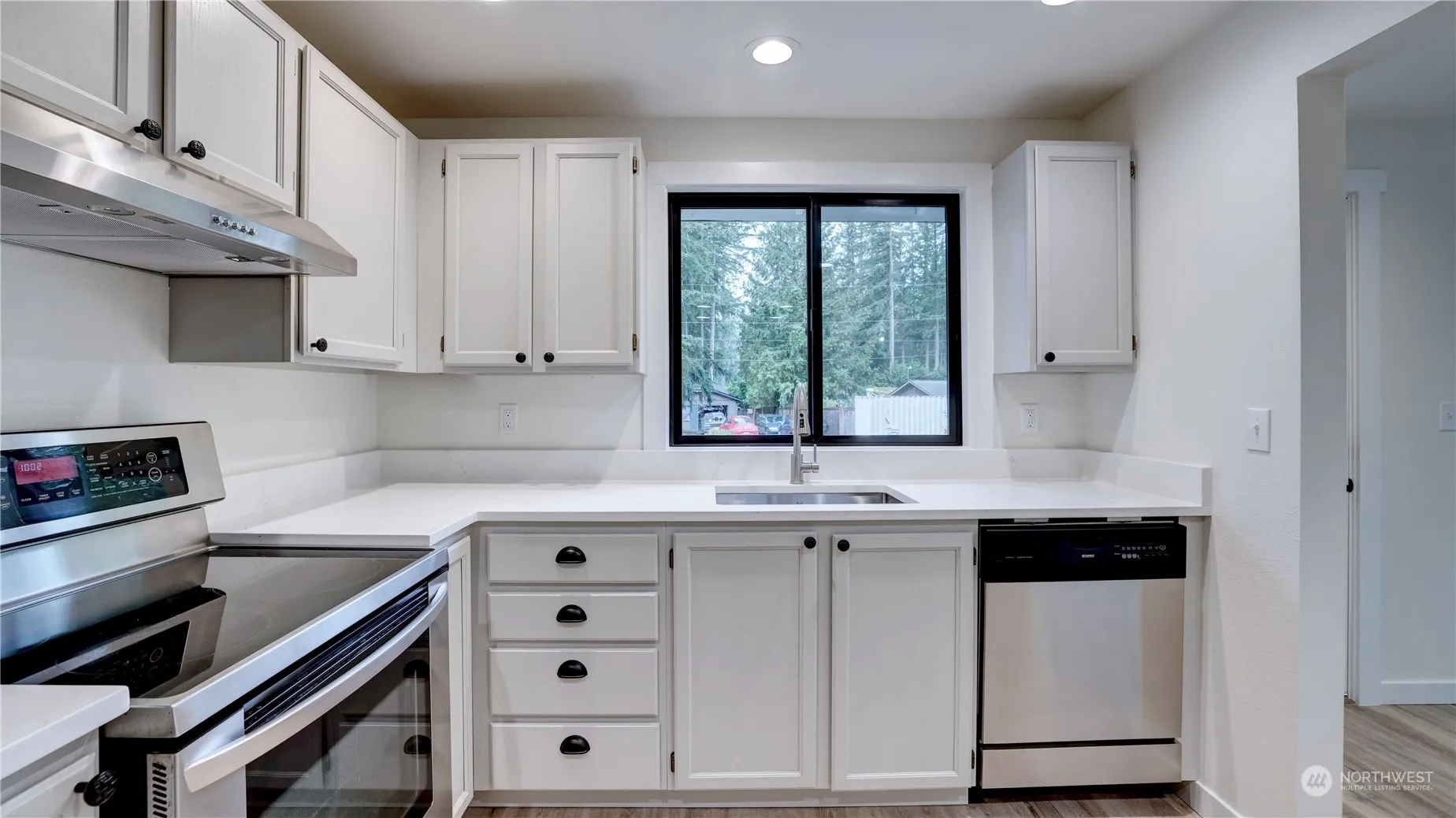 A beautiful remodeled rambler in Riverbend is awaiting new owners. This home boasts over $100,000 in improvements. Enjoy luxury vinyl plank flooring throughout home. The Living Room with a wall of windows and skylight is awash in natural light. The stylish new kitchen sports beautiful quartz countertops, stainless steel appliances and plenty of work and storage space. There are 3 bedrooms including a primary bedroom with a walk-in closet. The sunny level 10,000 square foot lot is perfect for outdoor activities. Neighborhood amenities incl a private lake, Kelly Park and access to the Snoqualmie River trail and the Snoqualmie River. Enjoy easy access to I-90, North Bend shopping and dining, golf courses, hiking and skiing. Welcome home.
