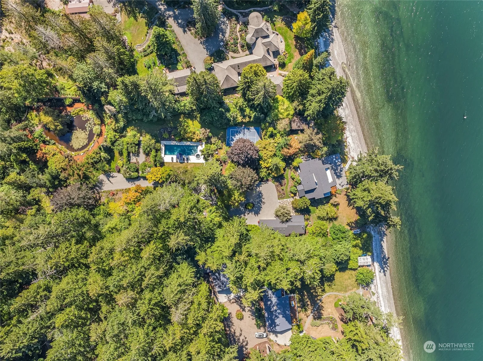 Discover a legacy waterfront estate on Bainbridge Island, where 6+ private acres blend luxury with nature’s beauty. The three bedroom main house features vaulted ceilings, a chef’s kitchen with a sunny dining area, main floor primary with marble bath, steam shower and secluded deck with an outdoor shower. Relax in the heated garden pool or play on your own pickleball court. Host guests in a charming guest house with a loft, fireplace, new bath, and gym. The waterside guest cottage has exposed beams and a new cedar deck. Explore forest trails, harvest oysters, fish for salmon, and enjoy sunsets from the daybed swing. Sauna, boat launch, mooring buoy, new roof, and new 7-bedroom septic. This serene oasis is a Pacific Northwest paradise!