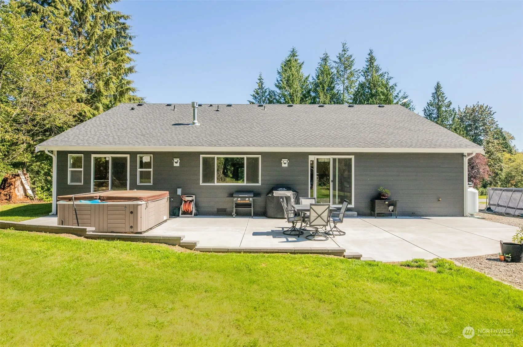 Waiting until 2025 – broker’s daughter is seller. Welcome home to this beautiful custom-built 3 bedroom 2 full bath rambler on 2 acres! No HOA home has AC, heat pump, All appliances stay, plus a pot filler. This stunning property features a gated driveway, a sports court, a basketball hoop, a hot tub, and a 3-car tandem garage. Additionally, it boasts a 54×20 patio, wired for Generac, an RV hook-up, a pasture for horses, and mature cedar trees. It is also LDA-approved for an additional 40×60 future garage/barn. This property offers the perfect blend of luxury, comfort, and endless possibilities. Property borders Grandview Road and includes both sides of the gravel drive to the stakes on the left and the fence on the right.